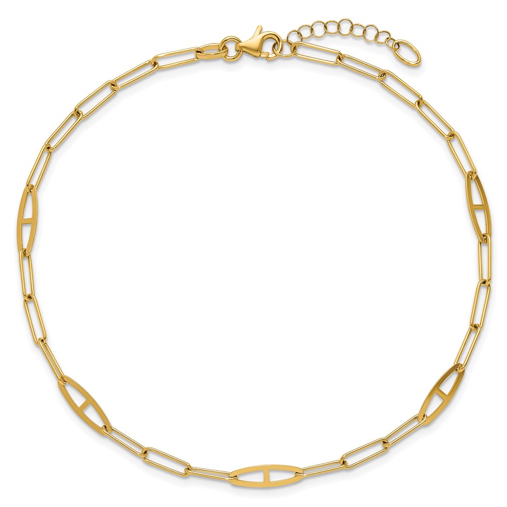 Leslie's 14K Fancy Paperclip Link 9 inch Plus 1 inch Extender - Total 10 inch Anklet