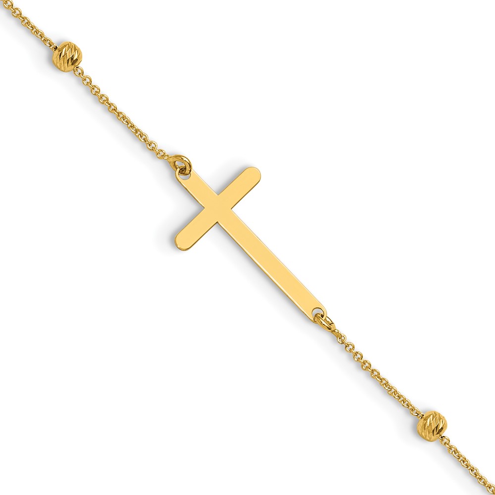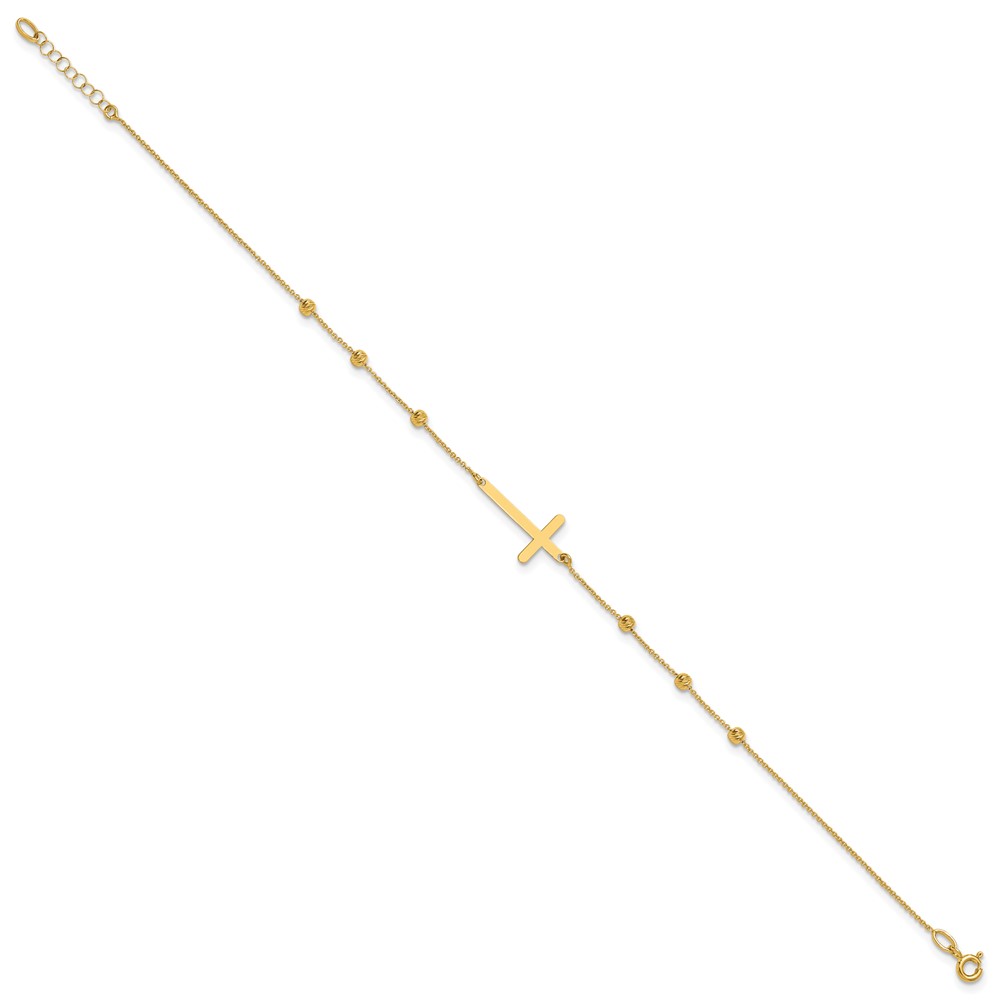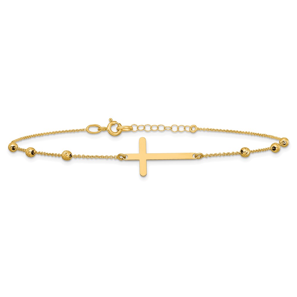 Leslie's 14K Cross and Diamond-cut Beads 9 inch Plus 1 inch Extender - Total 10 inch Anklet