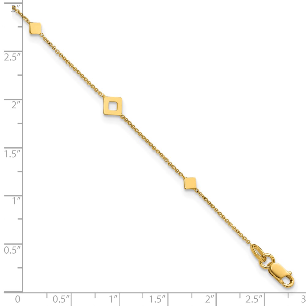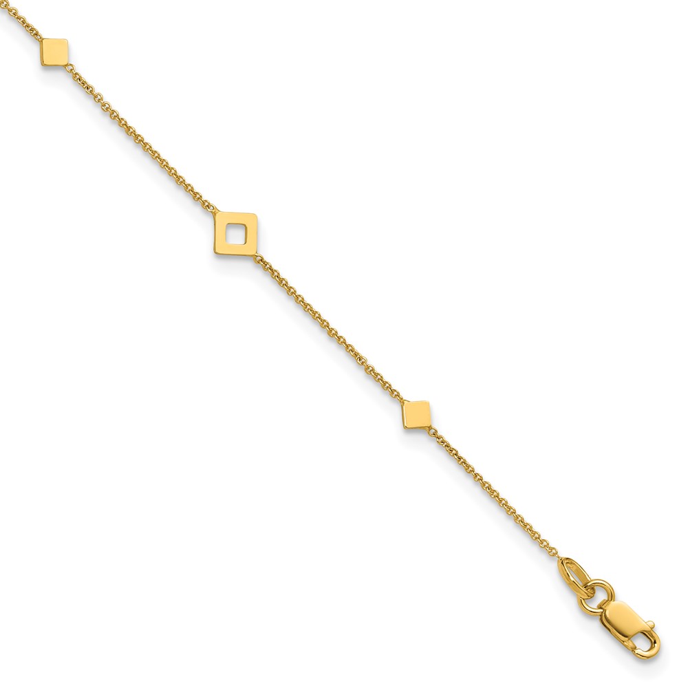 Leslie's 14K Geometric Squares 9 inch Plus 1 inch Extender - Total 10 inch Anklet