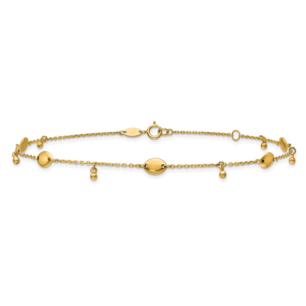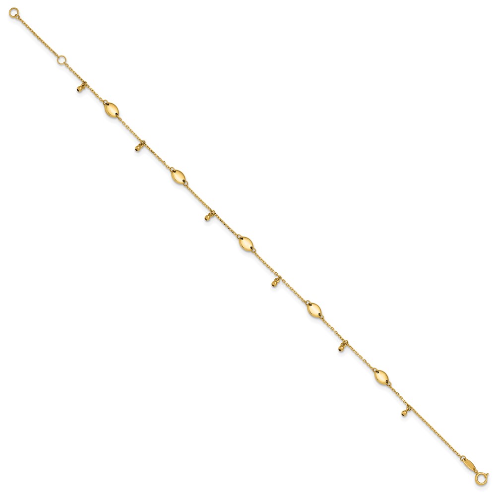Leslie's 14K Oval and Bead Dangle 9 inch Plus 1 inch Extender - Total 10 inch Anklet