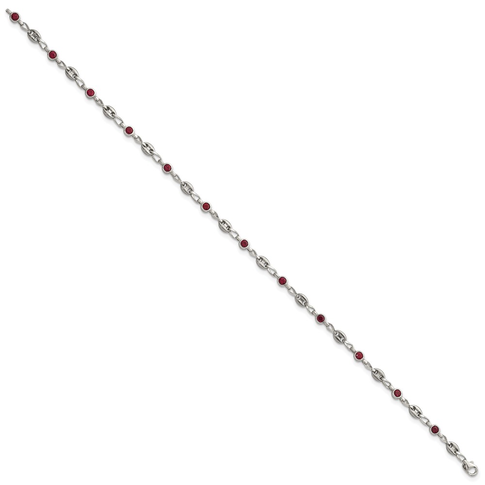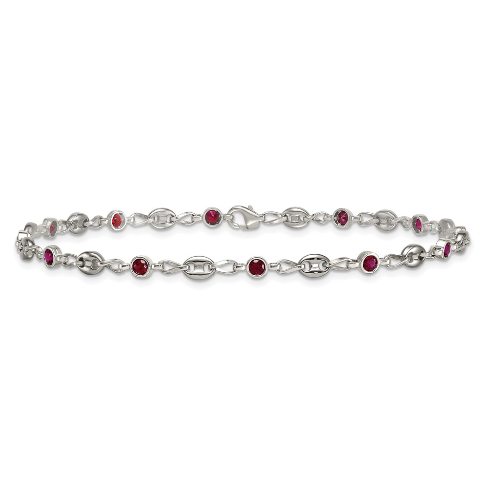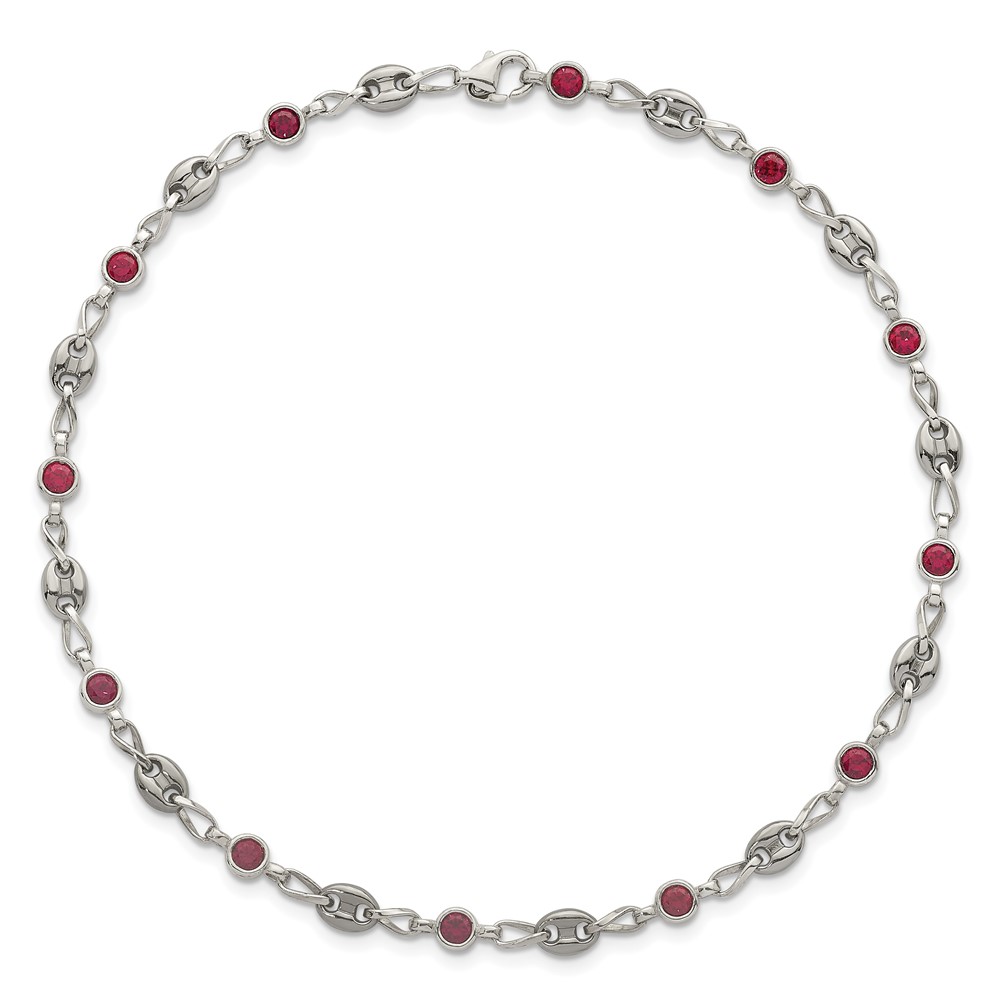 Stainless Steel with 925 Polished Red CZ 10.25in Anklet