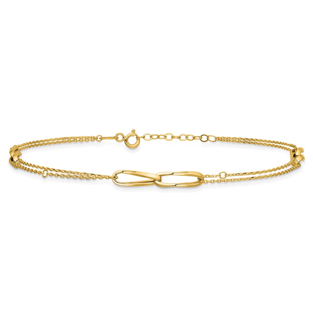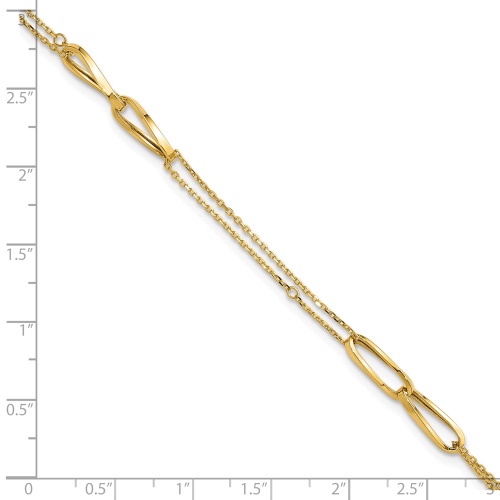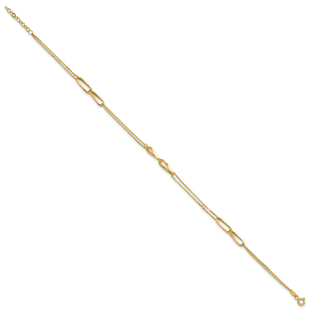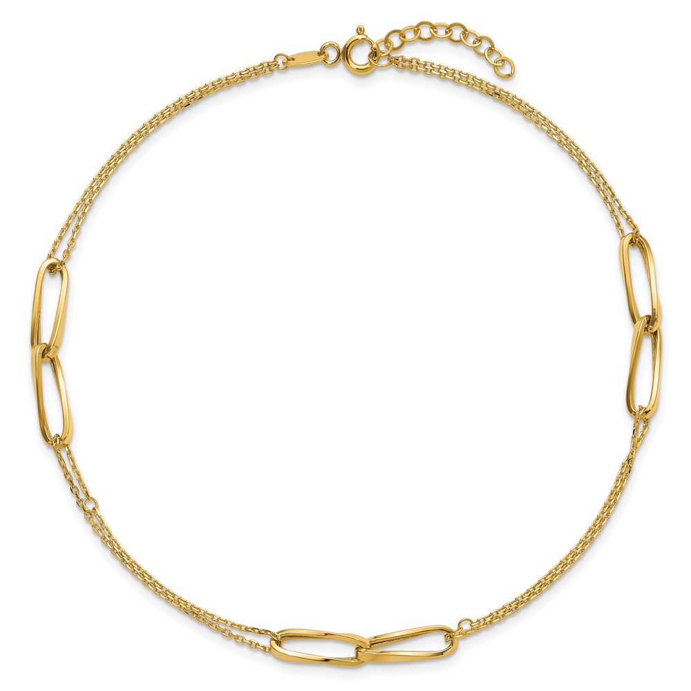 Leslie's 14K Polished 2-Strand Oval Links 10in Plus 1in ext. Anklet