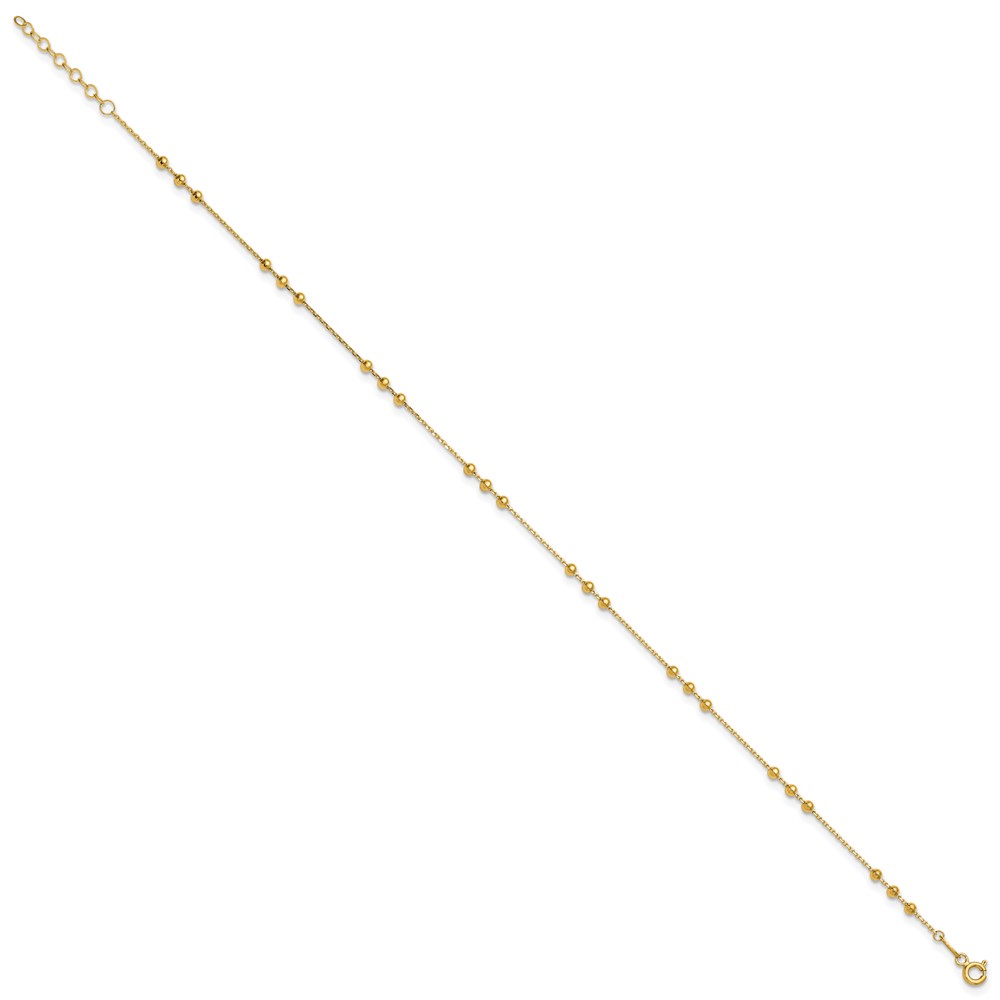 Leslie's 14K Polished and Beaded 10in Plus 1in ext. Anklet