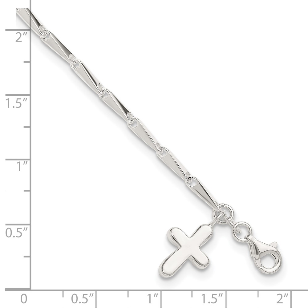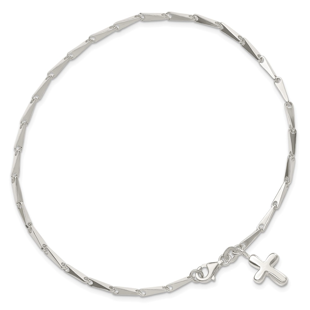Sterling Silver 9 in Solid Polished Cross on Fancy Link Anklet