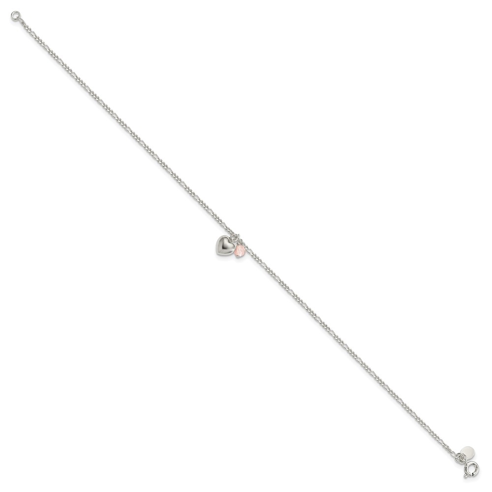 Sterling Silver Cherry Quartz Dangling Hearts on Figaro Link Anklet
