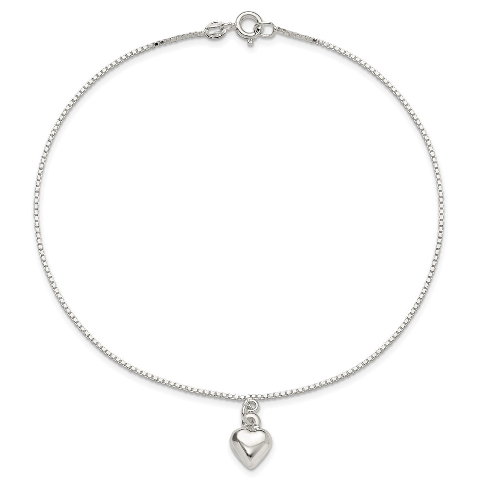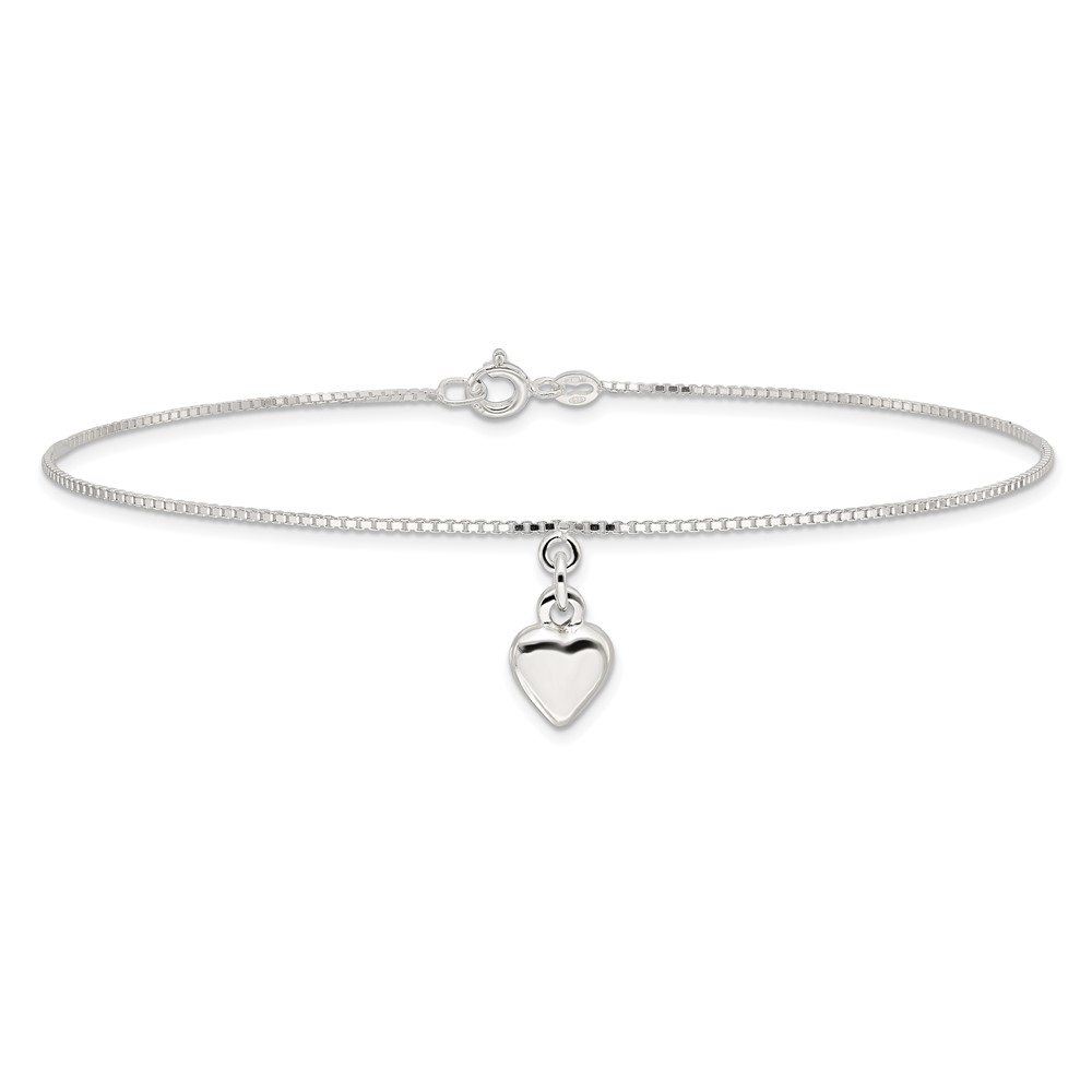 Sterling Silver 10inch Polished Puffed Heart Anklet