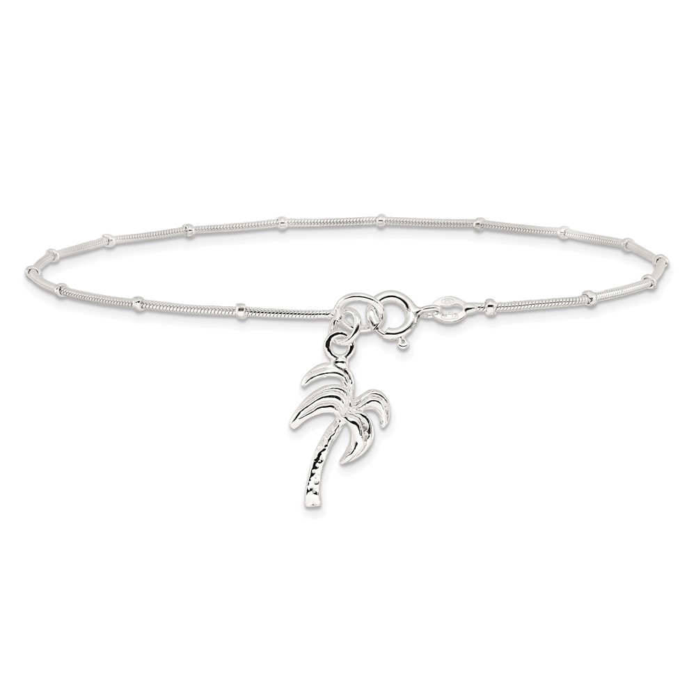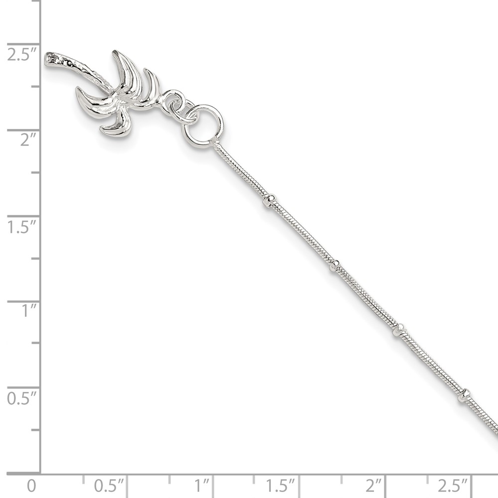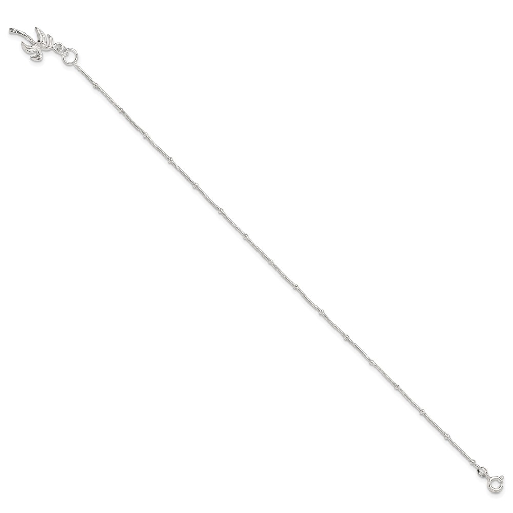 Sterling Silver 2-Strand Feathers 10 inch Plus 1 inch Extender - Total 11 inch Anklet