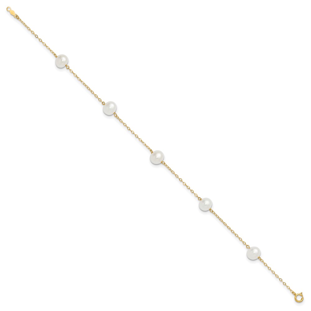 14k 7-8mm White Near-Round Freshwater Cultured Pearl 5-Station 9 inch Anklet