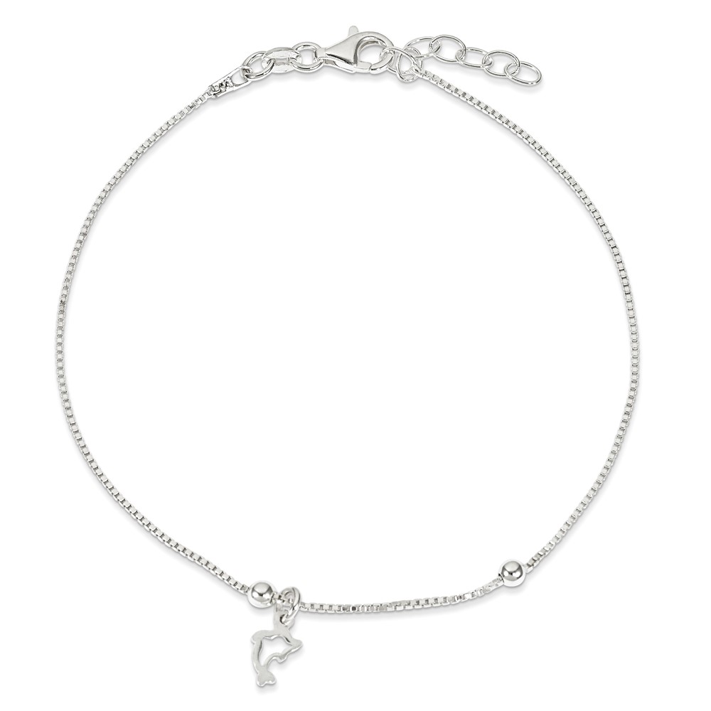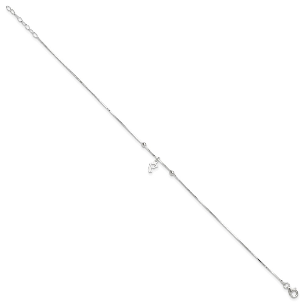 Sterling Silver Dolphin 9 inch Plus 1 inch Extender - Total 10 inch Anklet