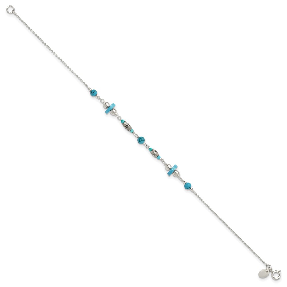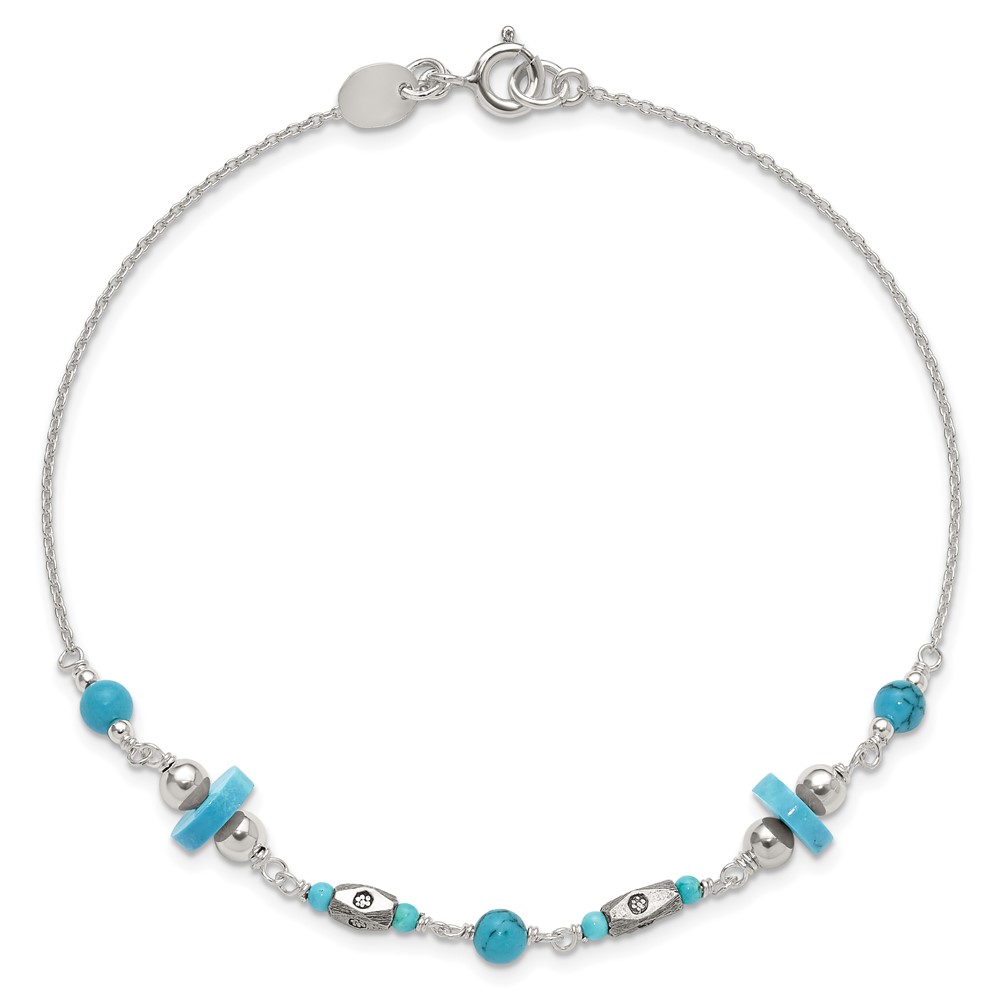 Sterling Silver Antiqued Turquoise Beaded Anklet