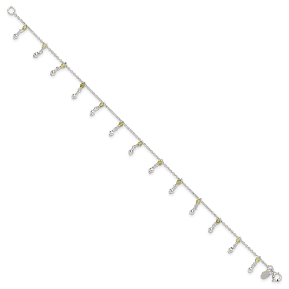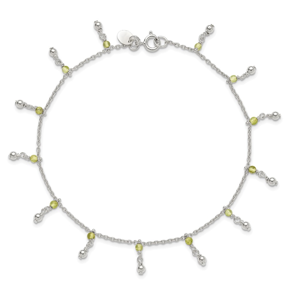 Sterling Silver Peridot Beads Anklet