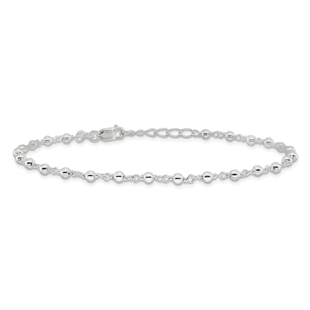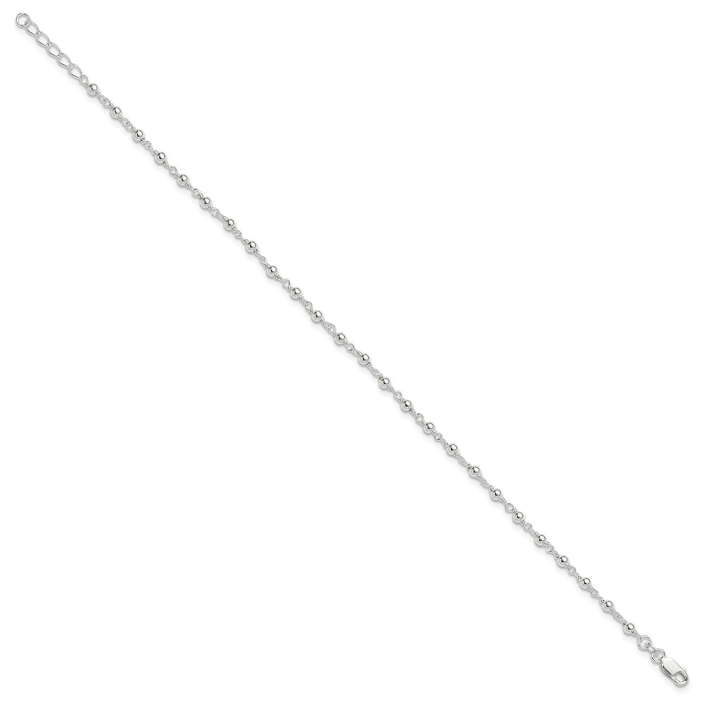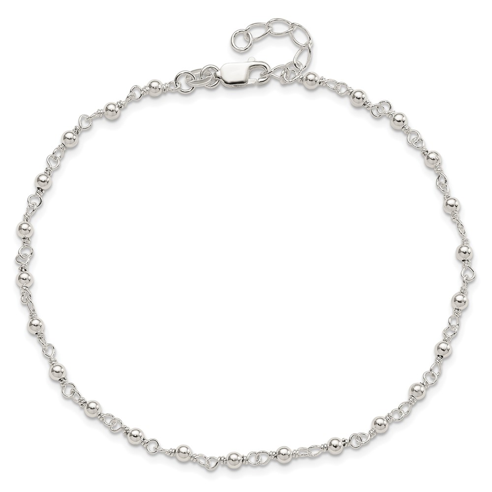 Sterling Silver Beaded 9 inch Plus 1 inch Extender - Total 10 inch Anklet