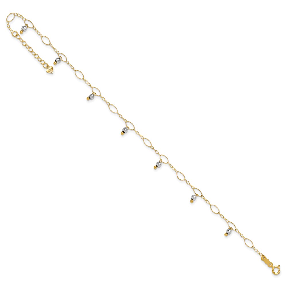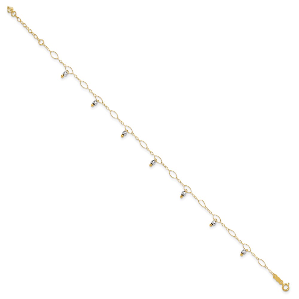 14K Two-Tone Mirror Bead Dangles 9 inch Plus 1 inch Extender - Total 10 inch Anklet