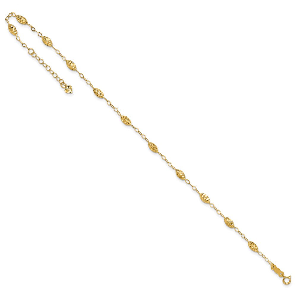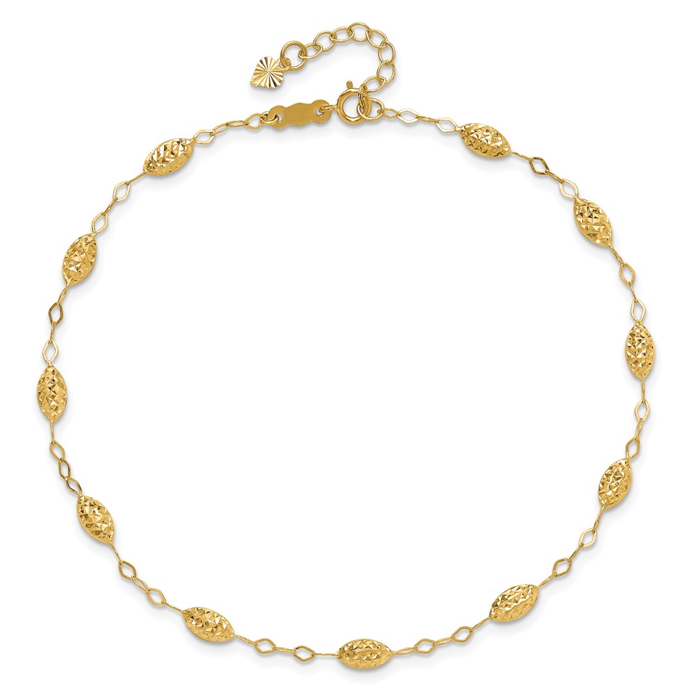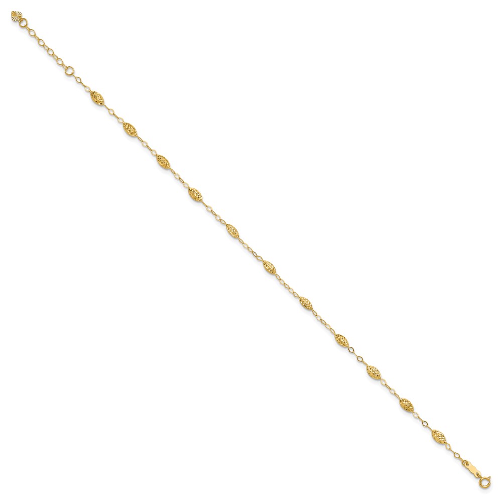 Leslie's 14K Infinity and Diamond-cut Bead 9 inch Plus 1 inch Extender - Total 10 inch Anklet