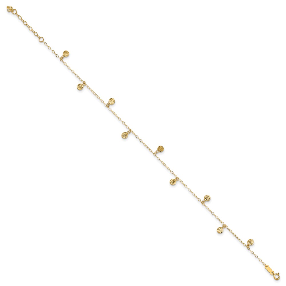 14k Hollow Dangle Circles 9 inch Plus 1 inch Extender - Total 10 inch Anklet