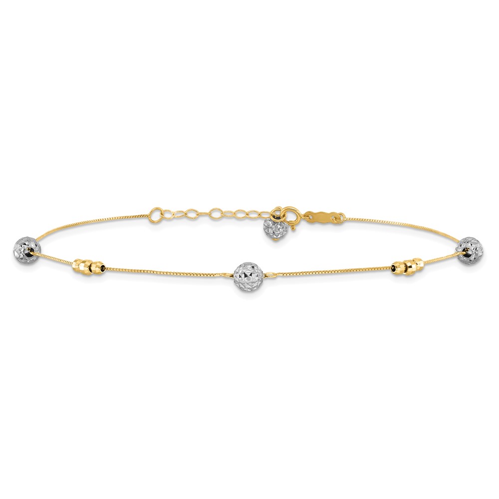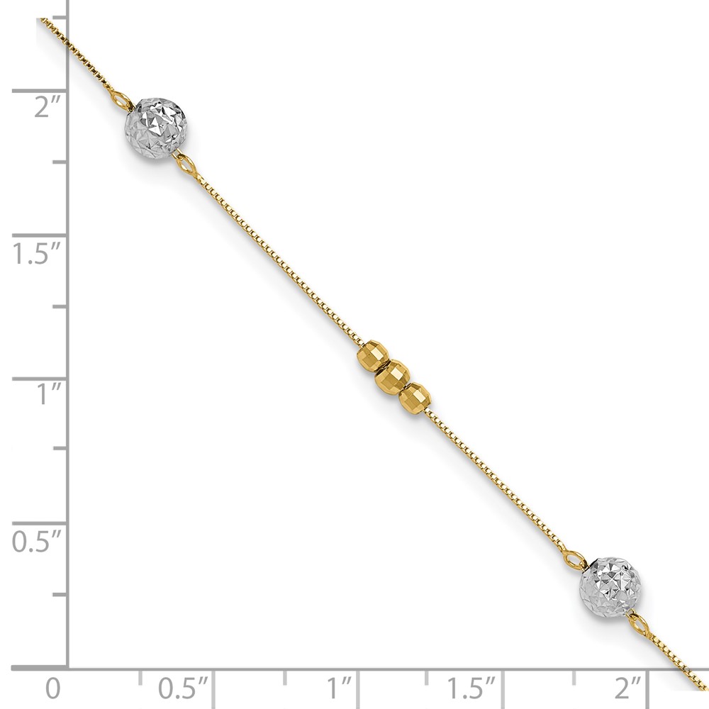 14k Two-tone Textured and Mirror Beads 5-Station 9 inch Plus 1 inch Bead Dangle Extender - Total 10 inch Anklet