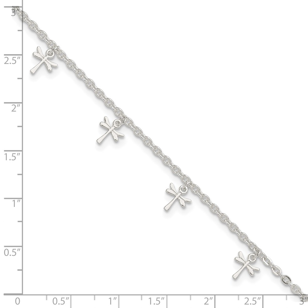 Sterling Silver Dragonfly Charms 9 inch Plus 1 inch Extender - Total 10 inch Anklet
