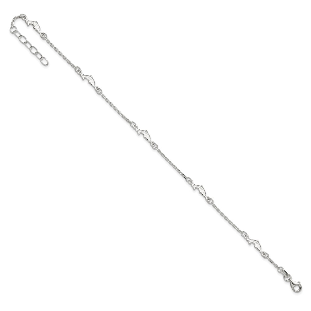 Sterling Silver Dolphin 5-Station 9 inch Plus 1 inch Extender - Total 10 inch Anklet