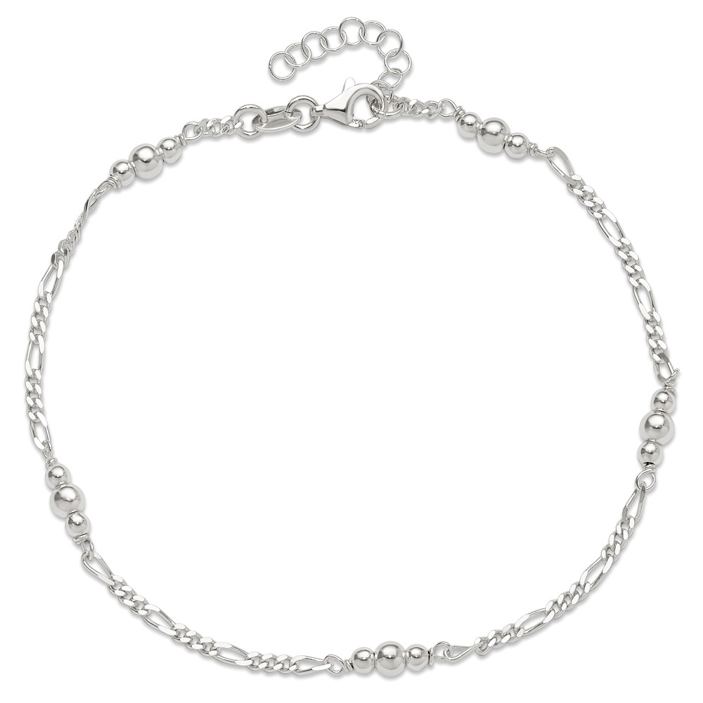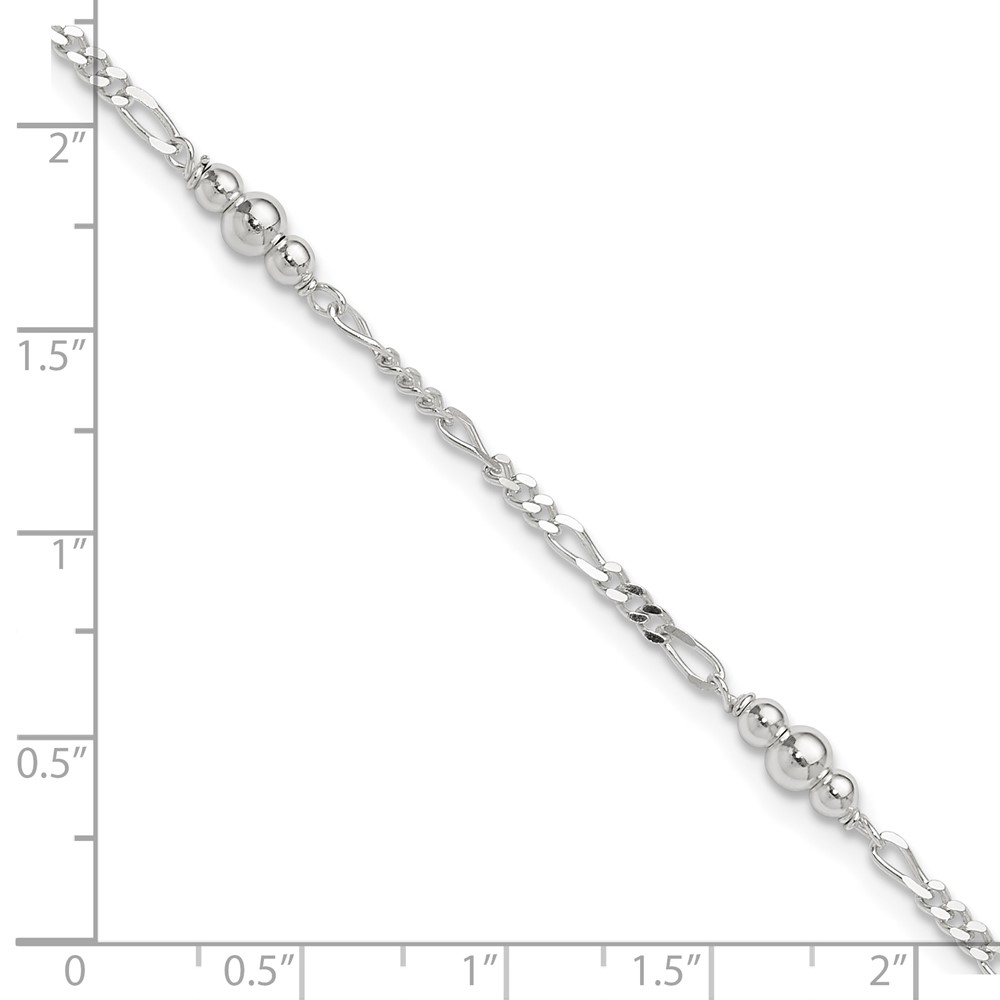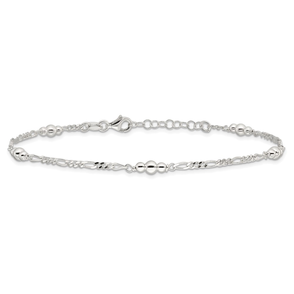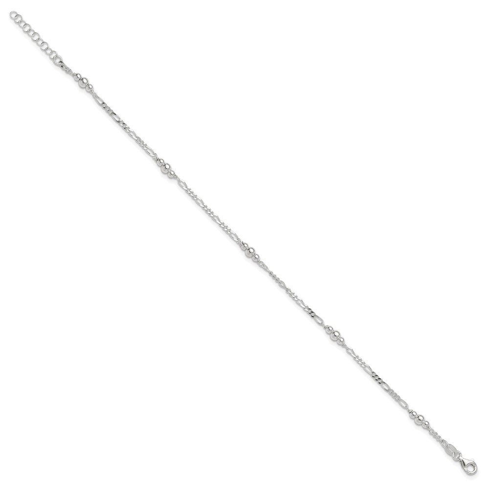 Sterling Silver Beaded Figaro 5-Station 9 inch Plus 1 inch Extender - Total 10 inch Anklet