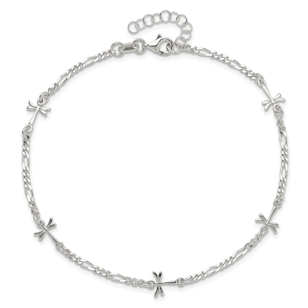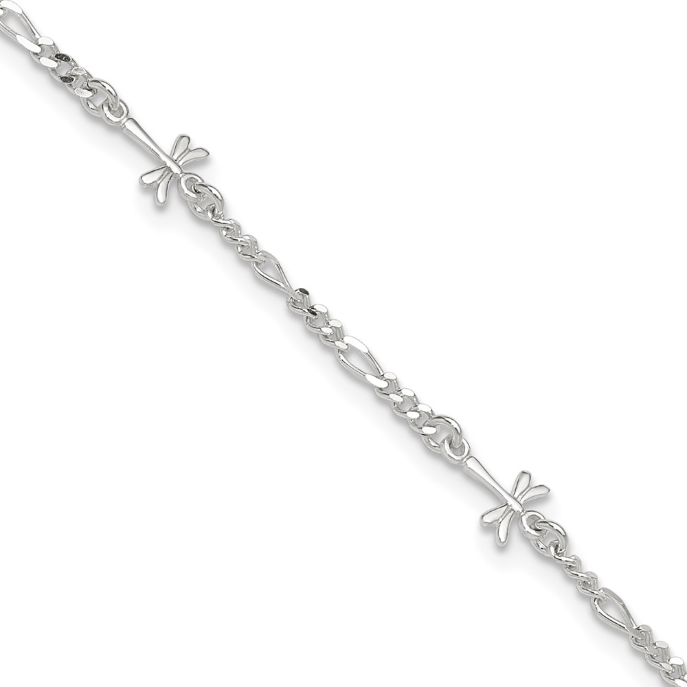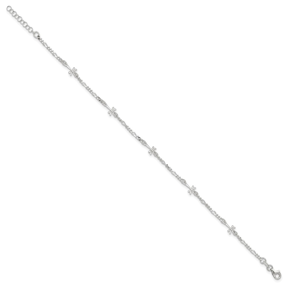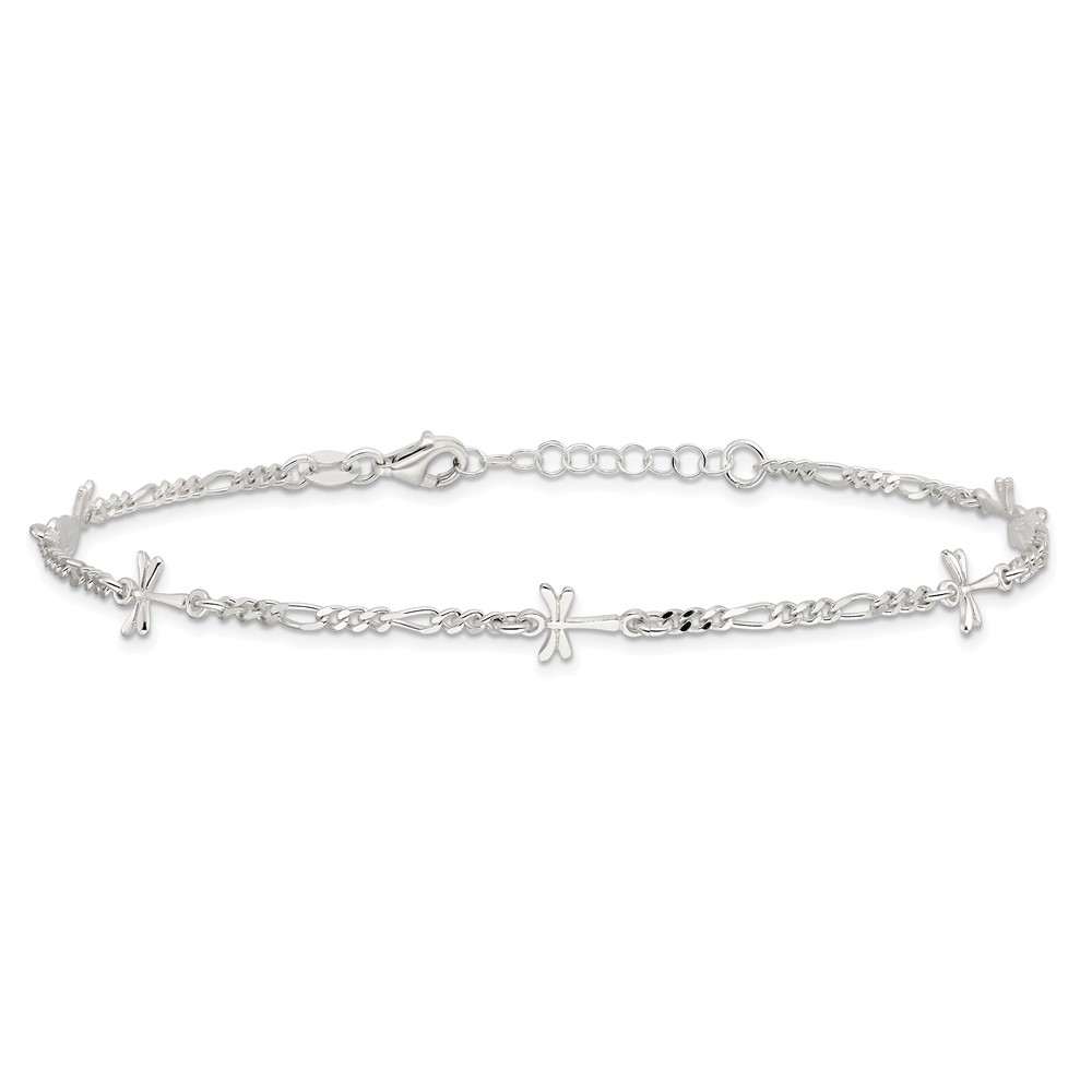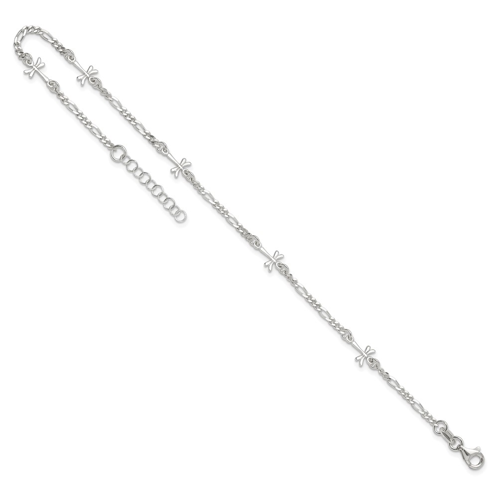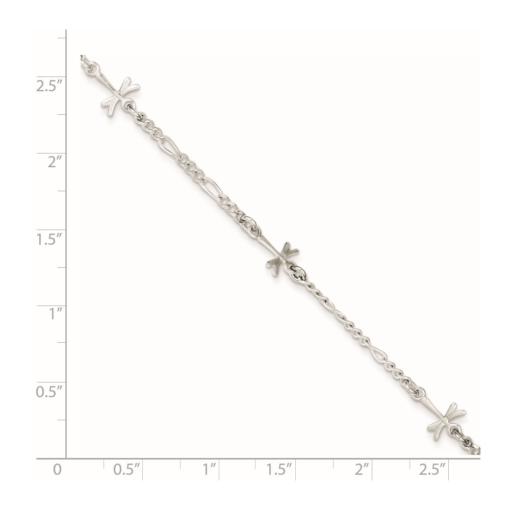 Sterling Silver Dragonflies 8 inch Plus 1 inch Extender - Total 9 inch Anklet