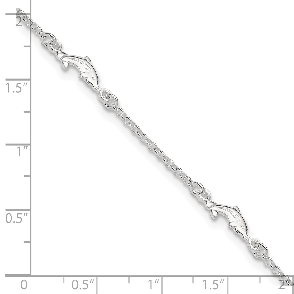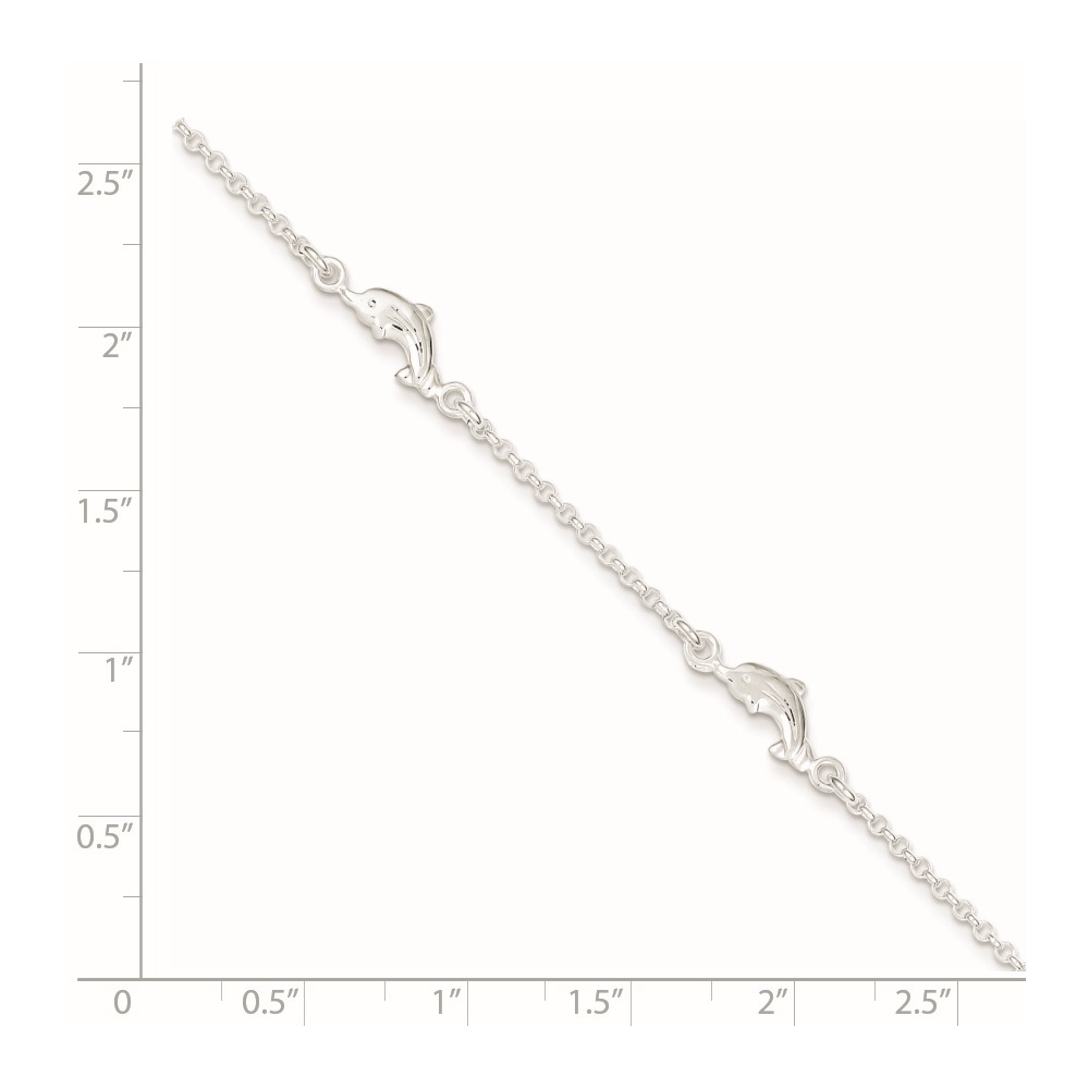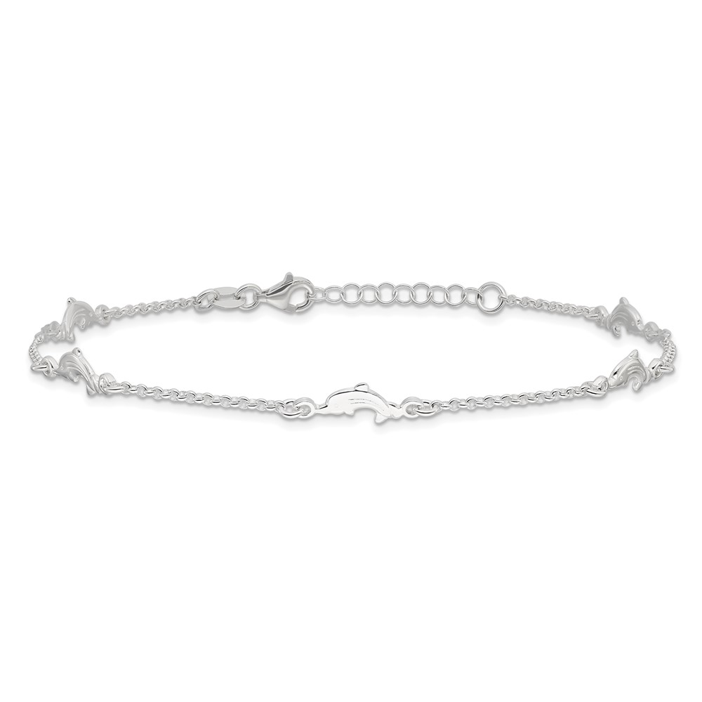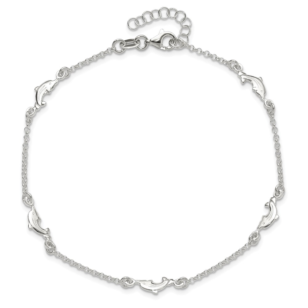 Sterling Silver Dolphin 5-Station 9 inch Plus 1 inch Extender - Total 10 inch Anklet