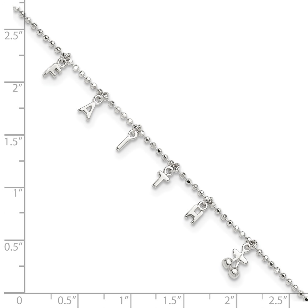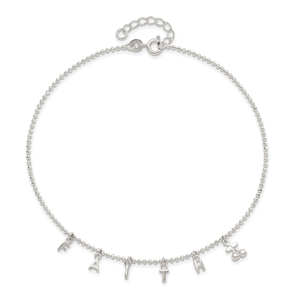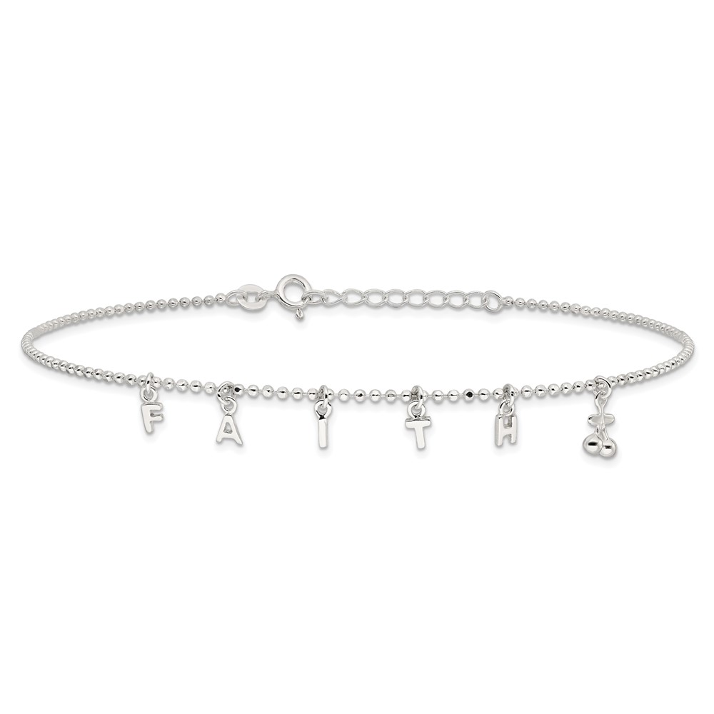 Sterling Silver FAITH Letters 10 inch Plus 1 inch Extender - Total 11 inch Anklet