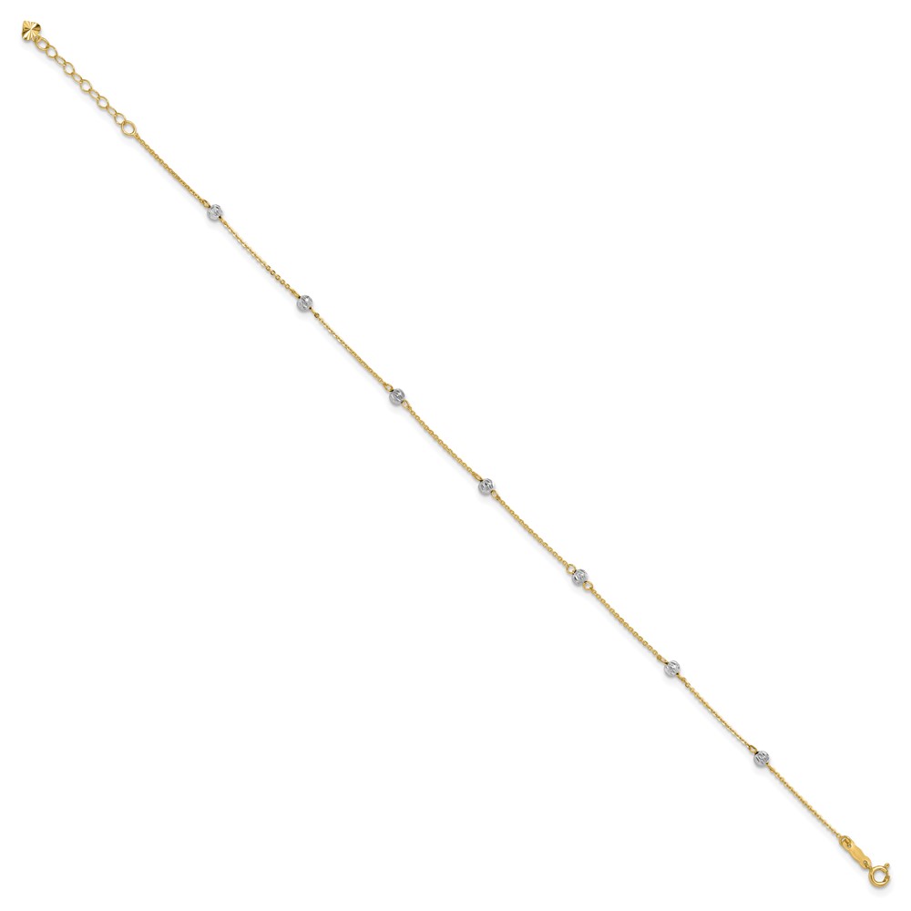 14K Two-tone Diamond-cut Beads 7-Station 9 inch Plus 1 inch Extender - Total 10 inch Anklet