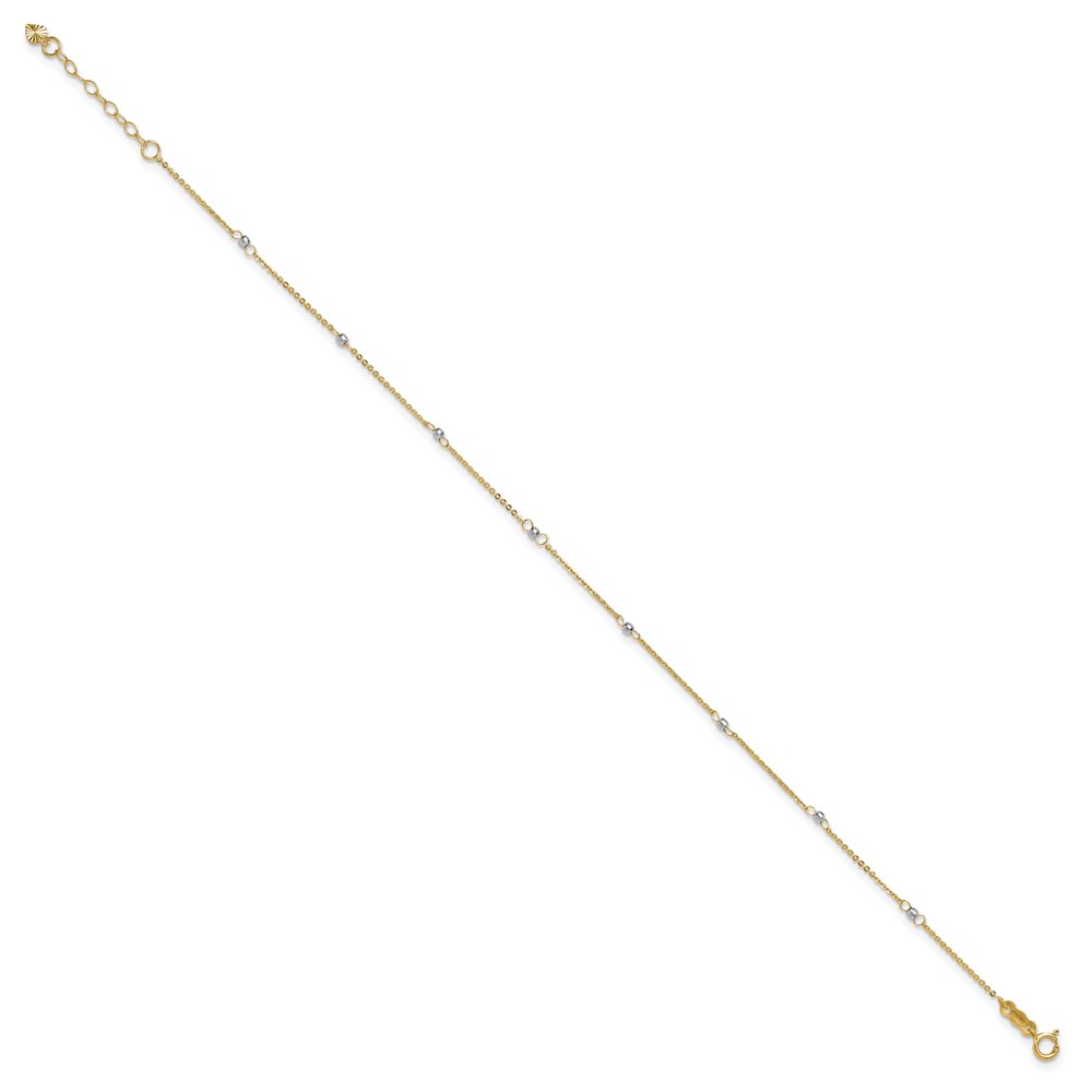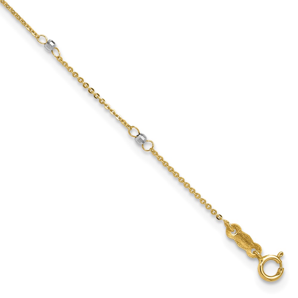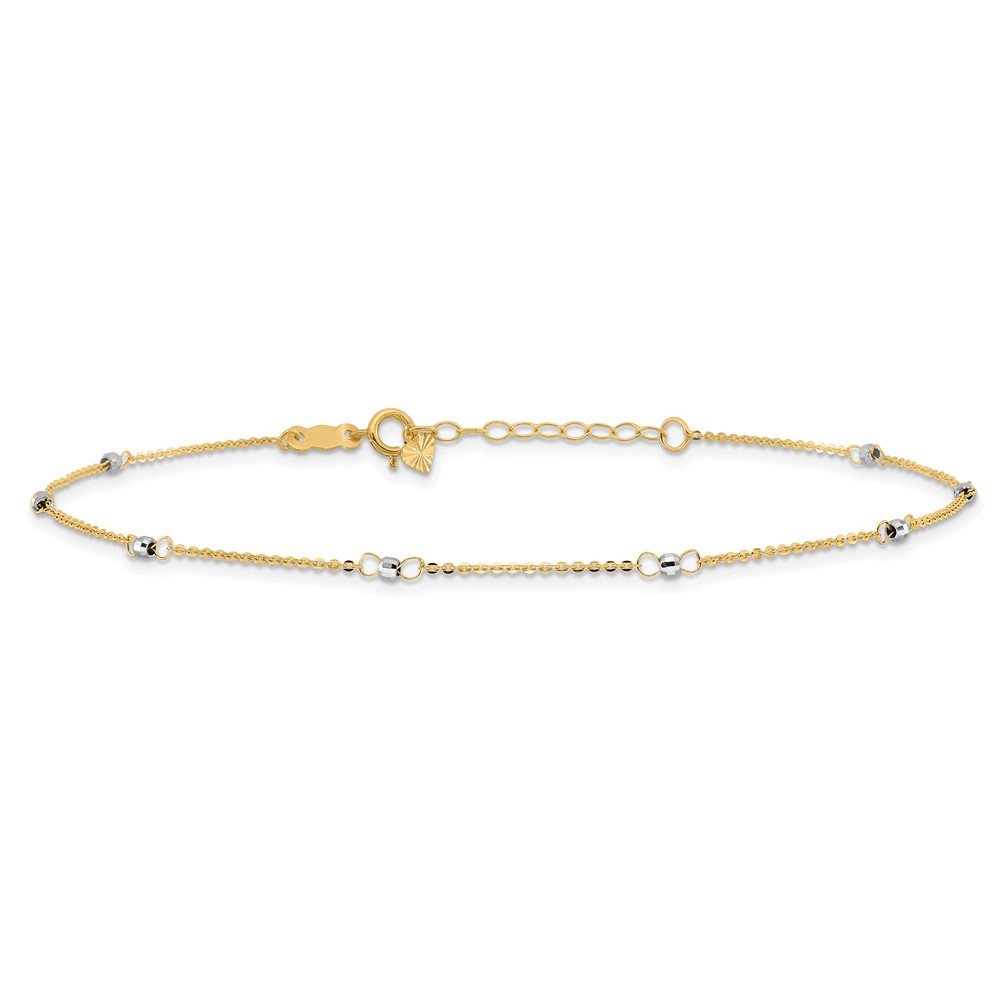 14k Two-tone Cable Chain Mirror Beads 8-Station 9 inch Plus 1 inch Extender - Total 10 inch Anklet