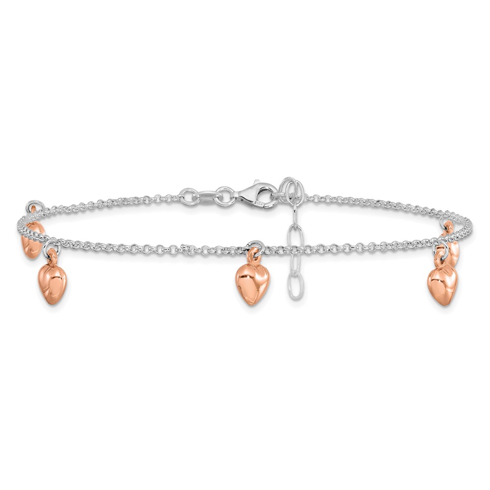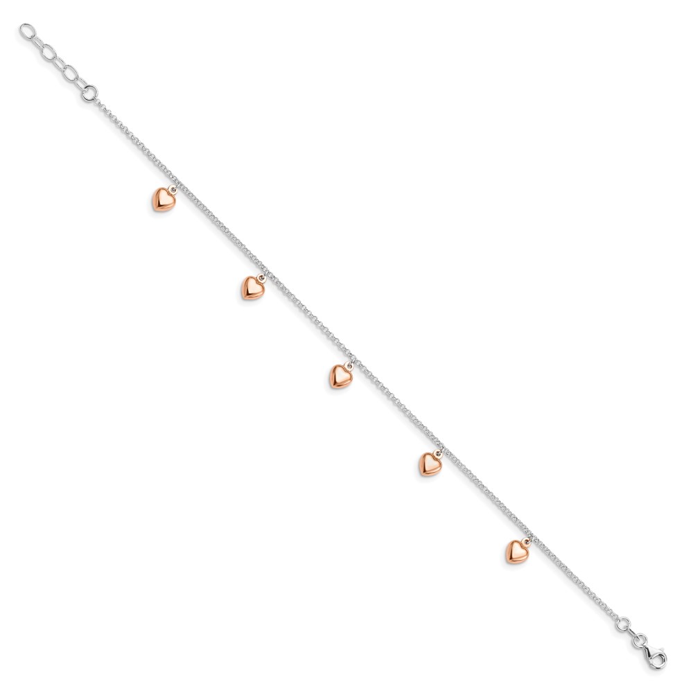 Leslie's Sterling Silver Rose-tone 18K Flash-plated Hearts 9 inch Plus 1 inch Extender - Total 10 inch Anklet