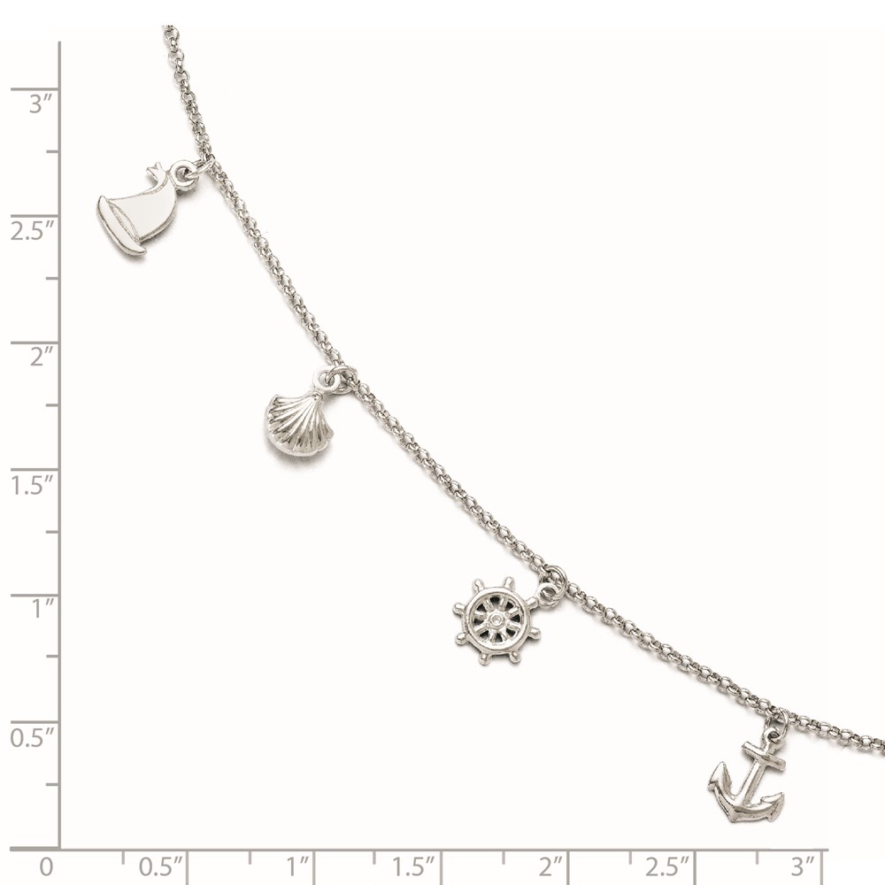 Leslie's Sterling Silver Rhodium-plated Nautical Charms 9 inch Plus 1 inch Extender - Total 10 inch Anklet