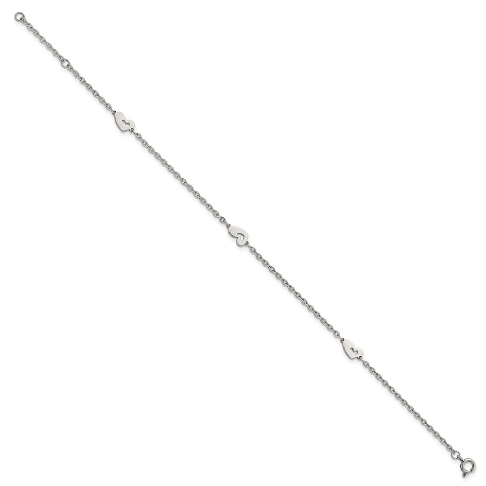 Chisel Stainless Steel Polished Hearts 9 inch Anklet Plus 1 inch Extension