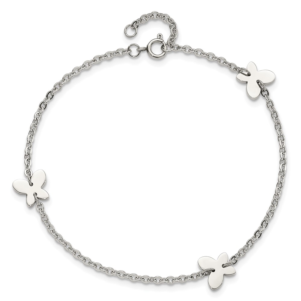 Chisel Stainless Steel Polished with Butterfly Charms 9 inch Anklet Plus 1 inch Extension