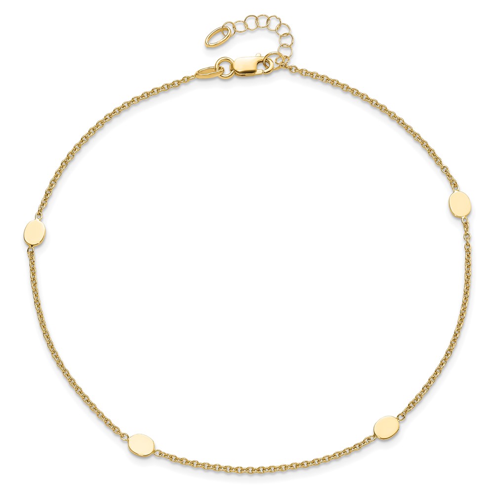 Leslie's 14K Oval Disc 4-Station 10 inch Plus 1 inch Extender - Total 11 inch Anklet