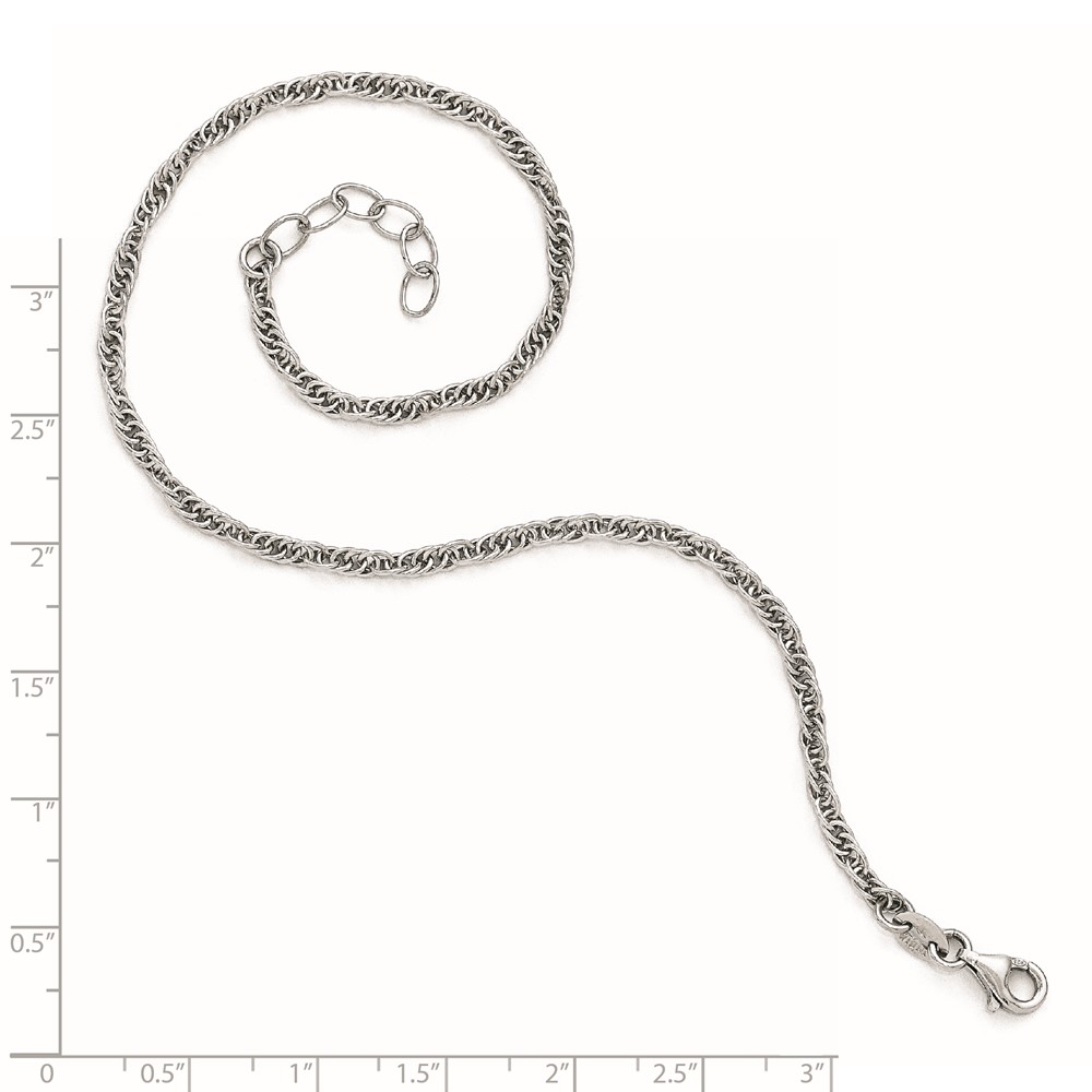 Leslie's Sterling Silver Rhodium-plated Rope 10.5 inch Plus 1 inch Extender - Total 11.5 inch Anklet
