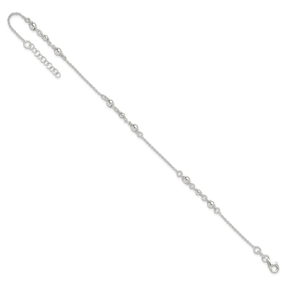Sterling Silver Beaded 9 inch Plus 1 inch Extender - Total 10 inch Anklet