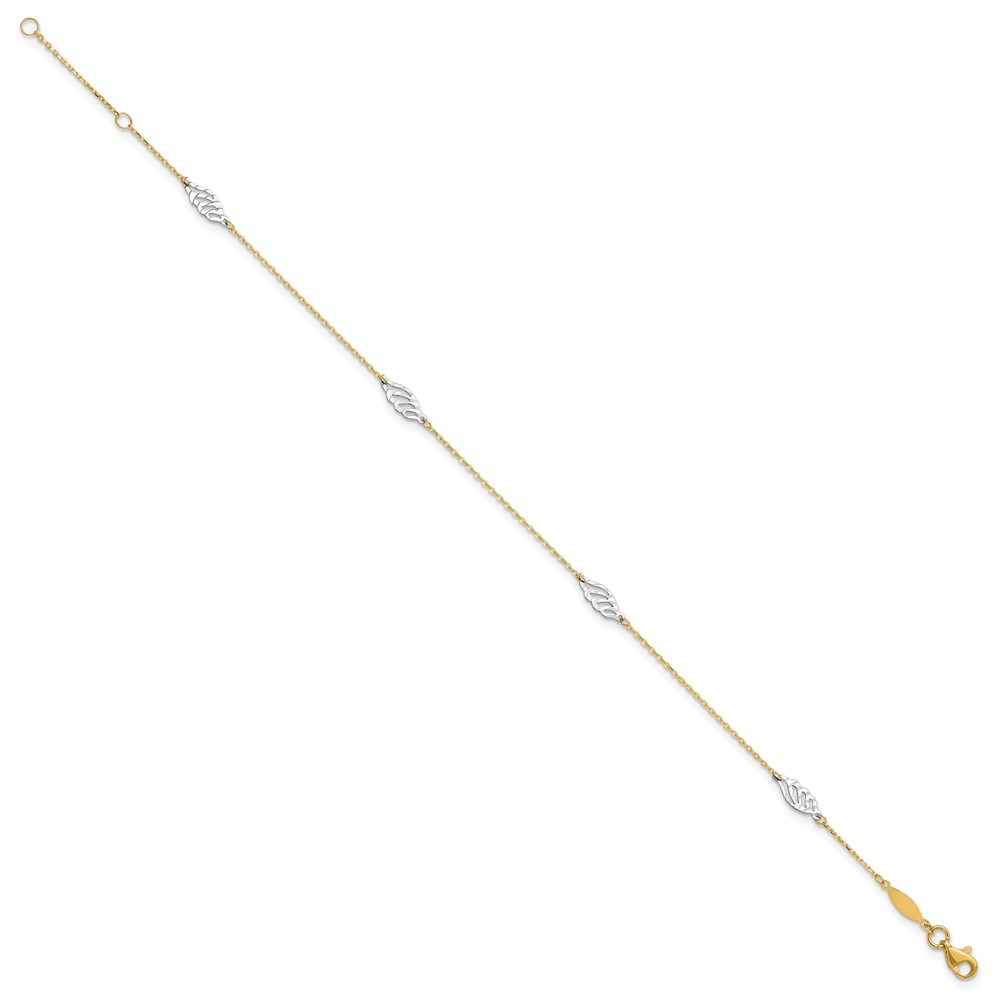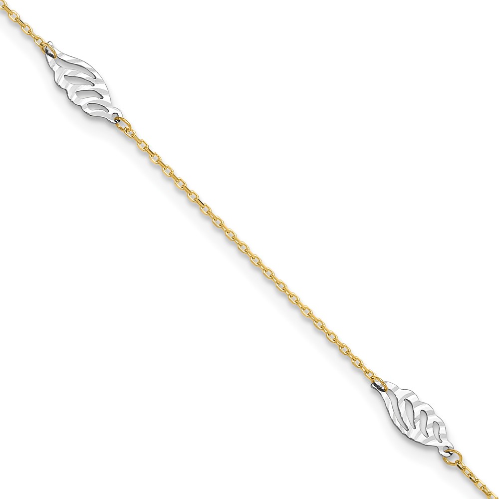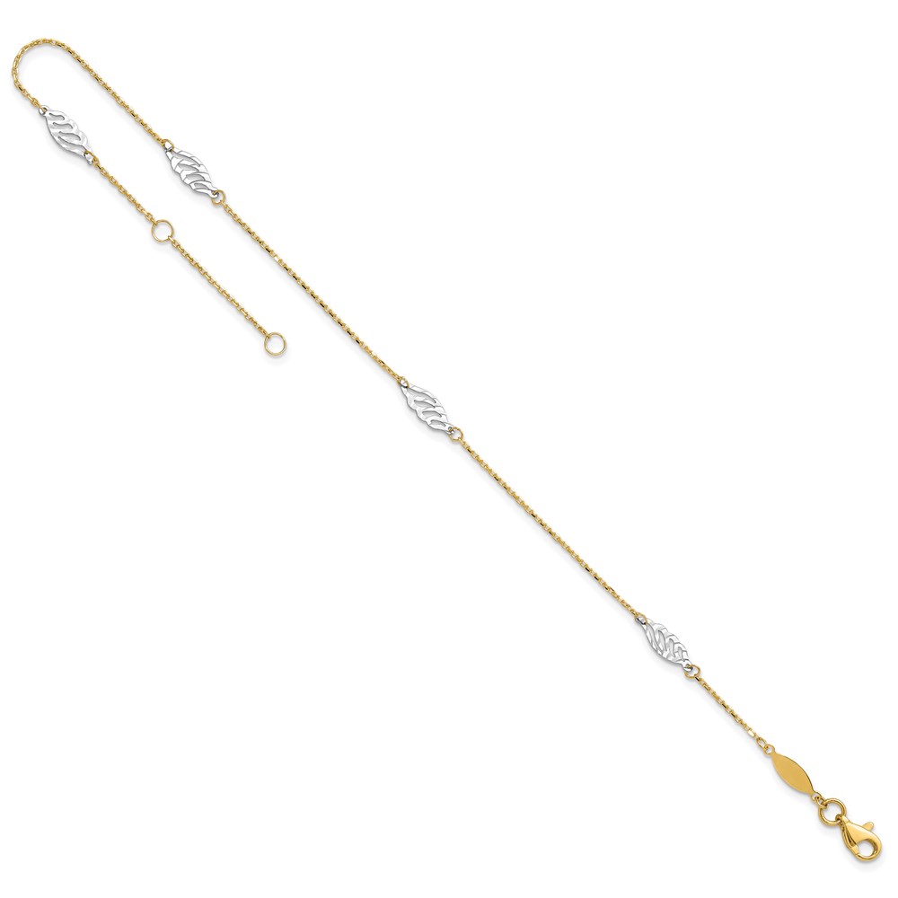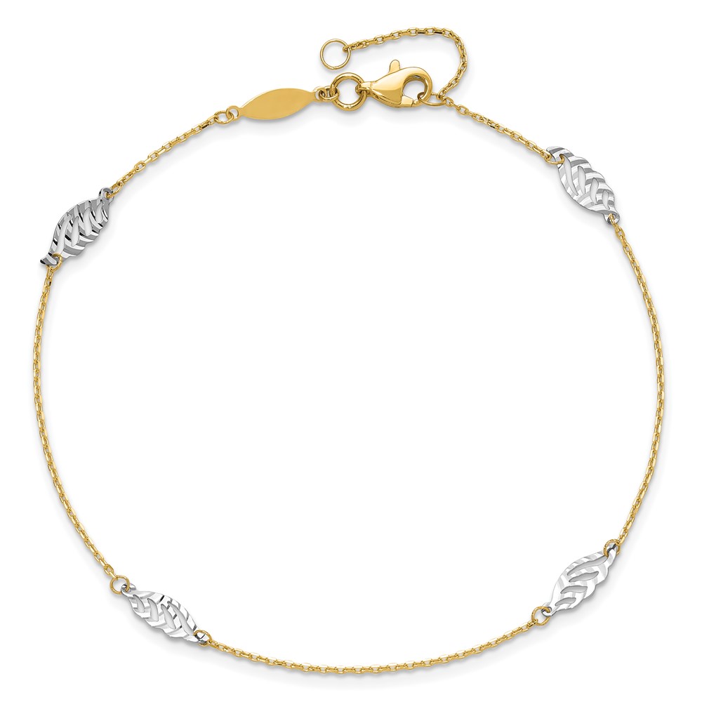 14K Two-Tone Diamond-cut Leaf 4-Station 9 inch Plus 1 inch Extender - Total 10 inch Anklet