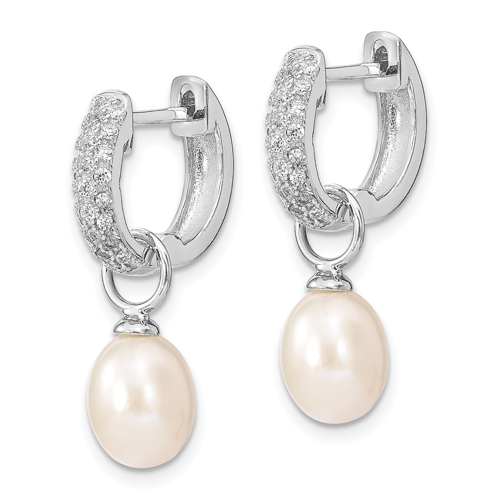 Sterling Silver Rhodium-plated 7-8mm Pink and White Rice Freshwater Cultured Pearl and CZ Interchangeable Post Earrings Set