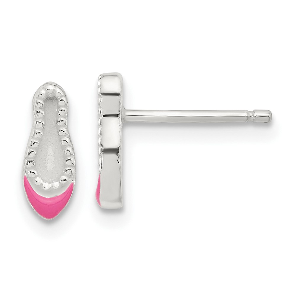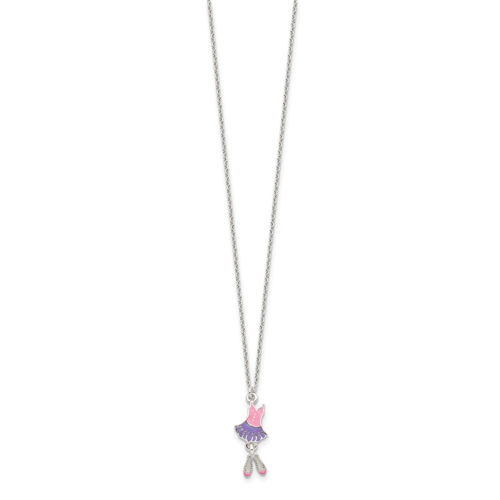 Sterling Silver Polished & Enameled Ballerina Children's 14in Necklace & Earring Set