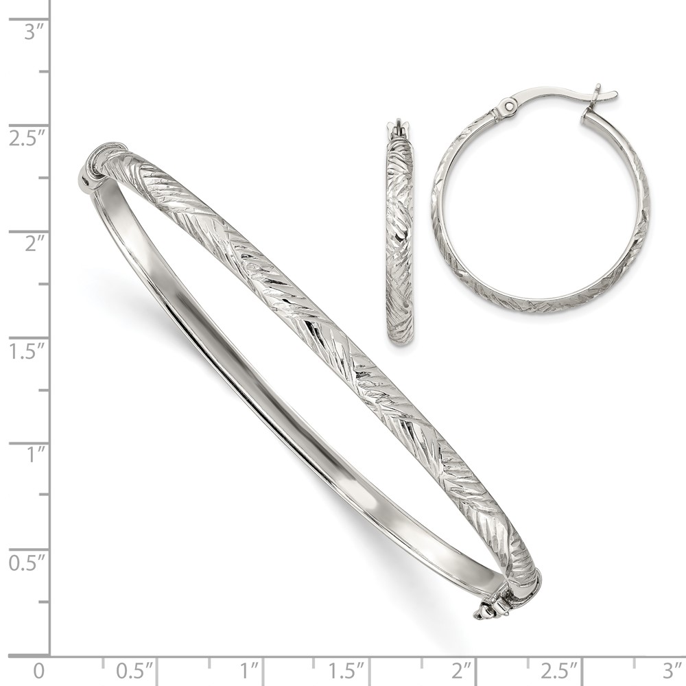 Sterling Silver D/C 4mm Bangle and 3mm Hoop Earring Set
