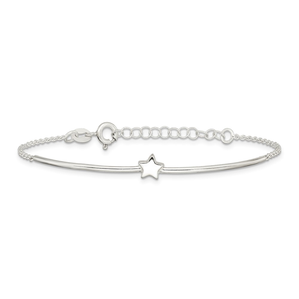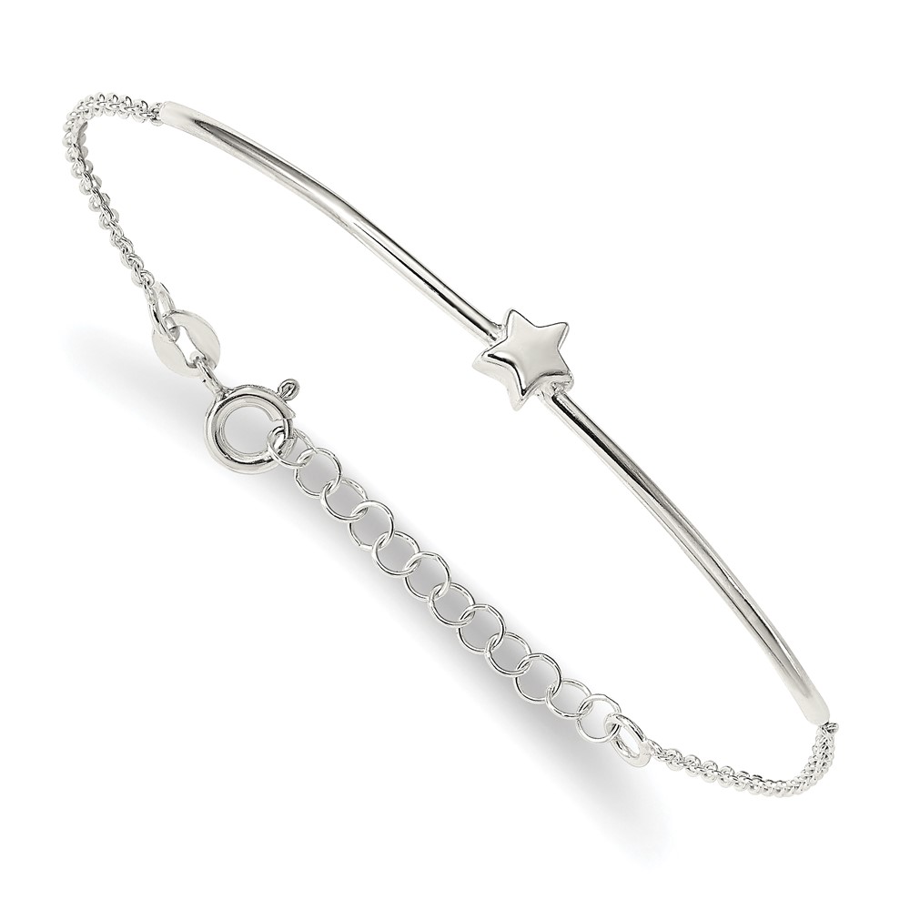 Sterling Silver Stars Bangle and Bracelet w/ 1" Ext. Two Piece Set