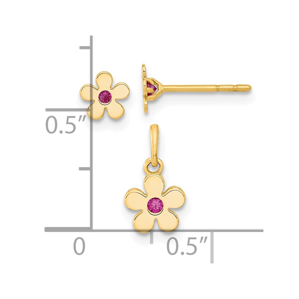 14K Madi K Polished CZ Flower Post Earrings and Flower Pendant Childrens Set