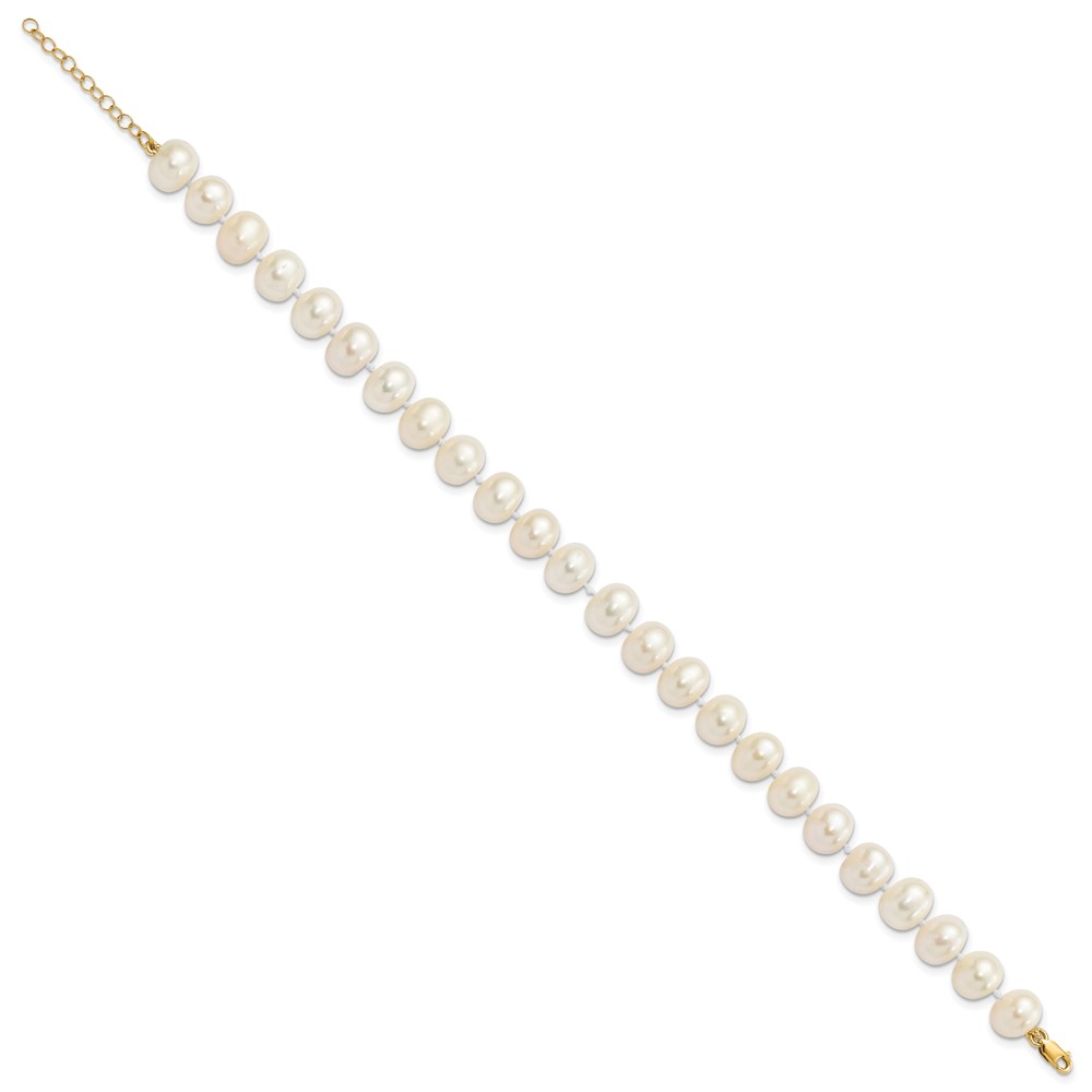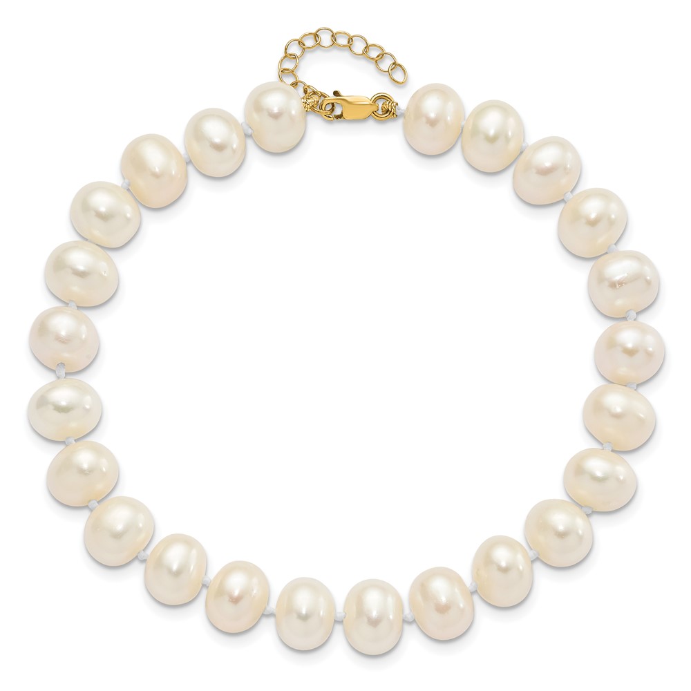 14k 8-9mm White Near-Round Freshwater Cultured Pearl 18 inch Necklace with 2 inch Extender/7.5 inch Bracelet with 1 inch Extender/Post Earrings Set