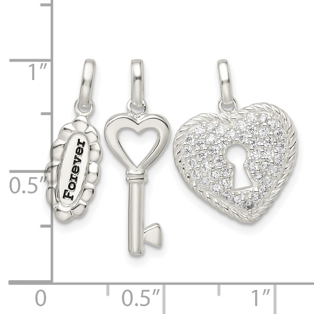 Sterling Silver Antiqued CZ 3 Piece Forever Pendant Set