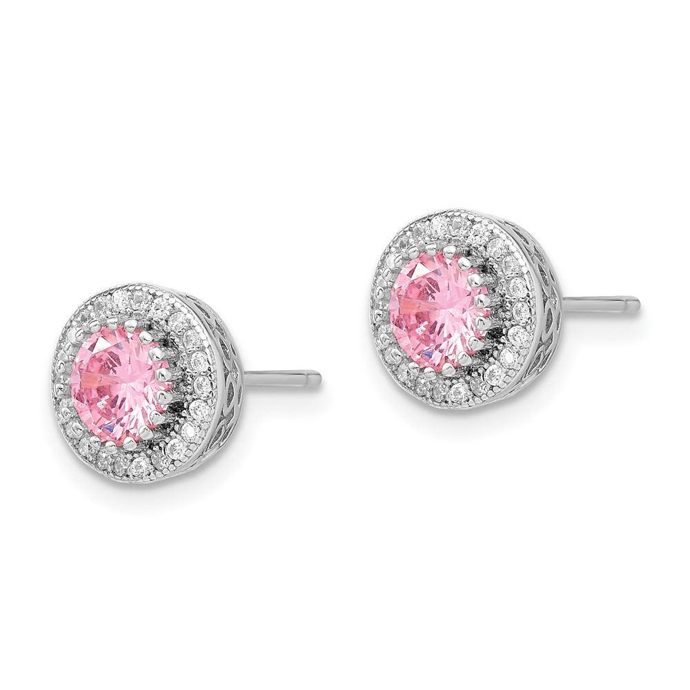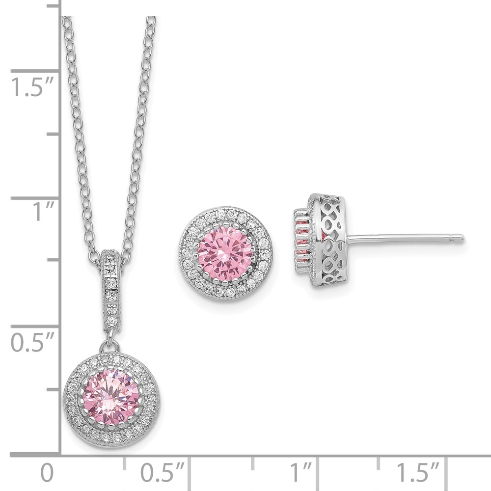 Sterling Silver Polished Rhodium-plated CZ 18in Necklace/Post Earrings Set