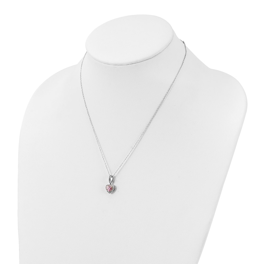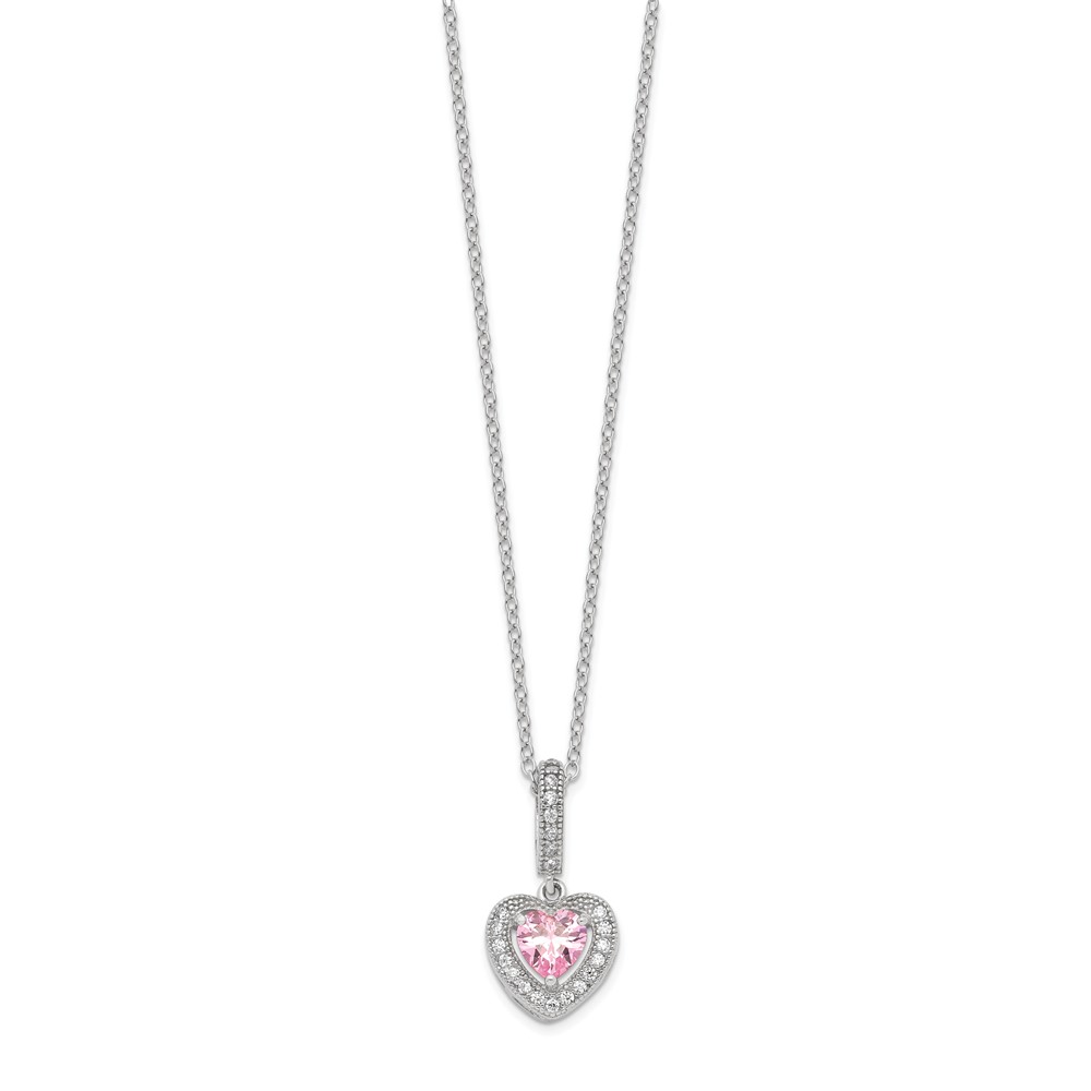 Sterling Silver Rhodium-plated Polished Clear and Pink CZ Heart 18 inch Necklace and Heart Post Earring Set