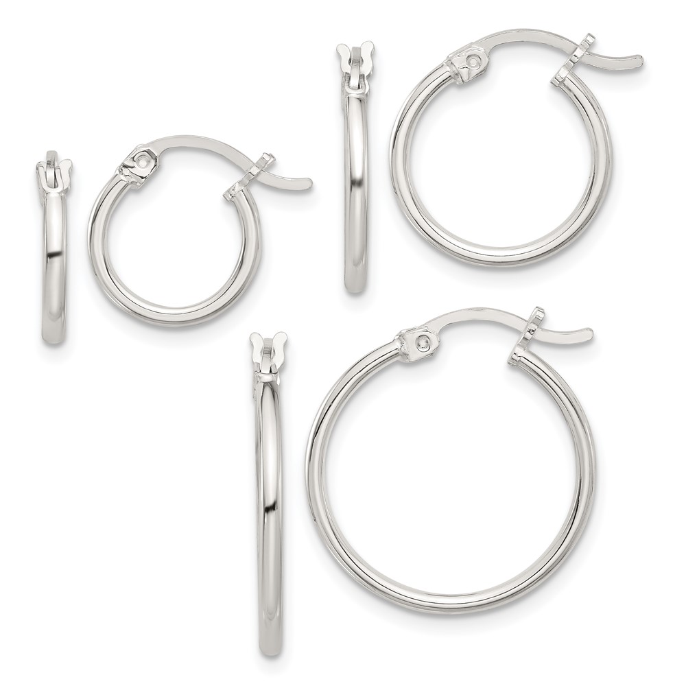 Sterling Silver Rhodium-plated Polished Set of 3 Hoop Earring Set