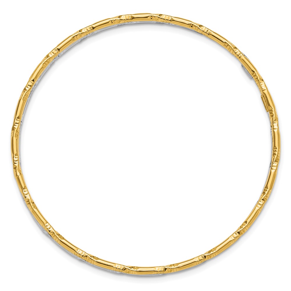 Sterling Silver Rhodium-plated Gold-tone Diamond-cut Set of 2 Bangles