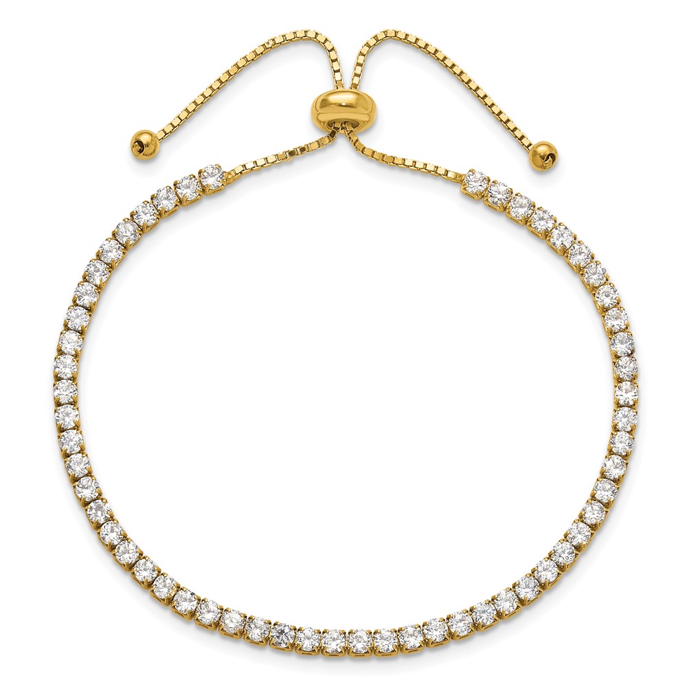Sterling Silver Gold-tone CZ Adjustable Bracelet and Post Earring Set