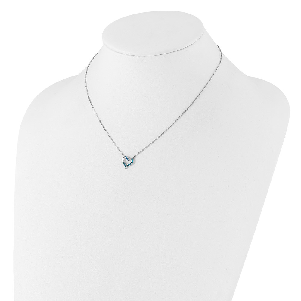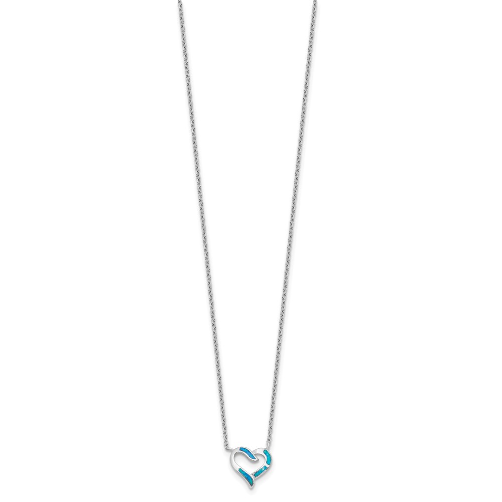 Sterling Silver RH-pl Cr.Opal Heart 16in Necklace w/2in ext and Earring Set