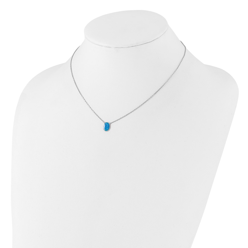 Sterling Silver RH-pl Blue Cr.Opal Oval 16in Necklace w/1.75 ext/Earring Se